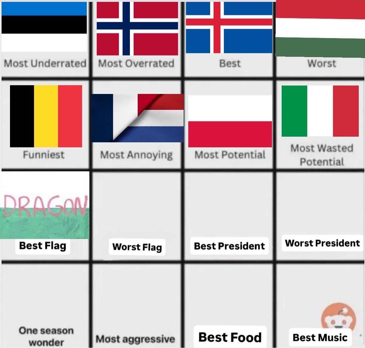 Gotta be the actual Welsh flag. Too hard to draw. And for the bants, it’d look funny next to the best flag.
