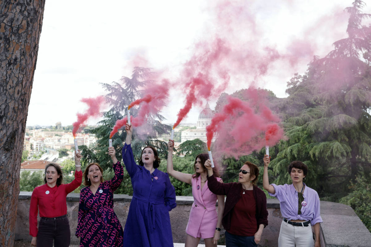 Members of the Catholic women’s group, Women’s Ordination Conference, hold flares of pink smoke, calling for women’s equality in the Catholic church and in protest at the male-only conclave, in Rome, Italy, on 7th May, 2025. PICTURE: Reuters/Matteo Minnella