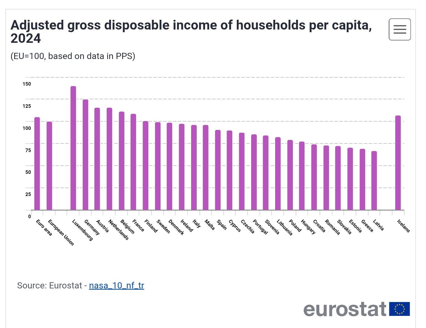 Disposable income in PPS means all net incomes compared to the price level of the country. Comparison to Sweden and Denmark is meaningful, because Nordic societies are very similar in many senses.