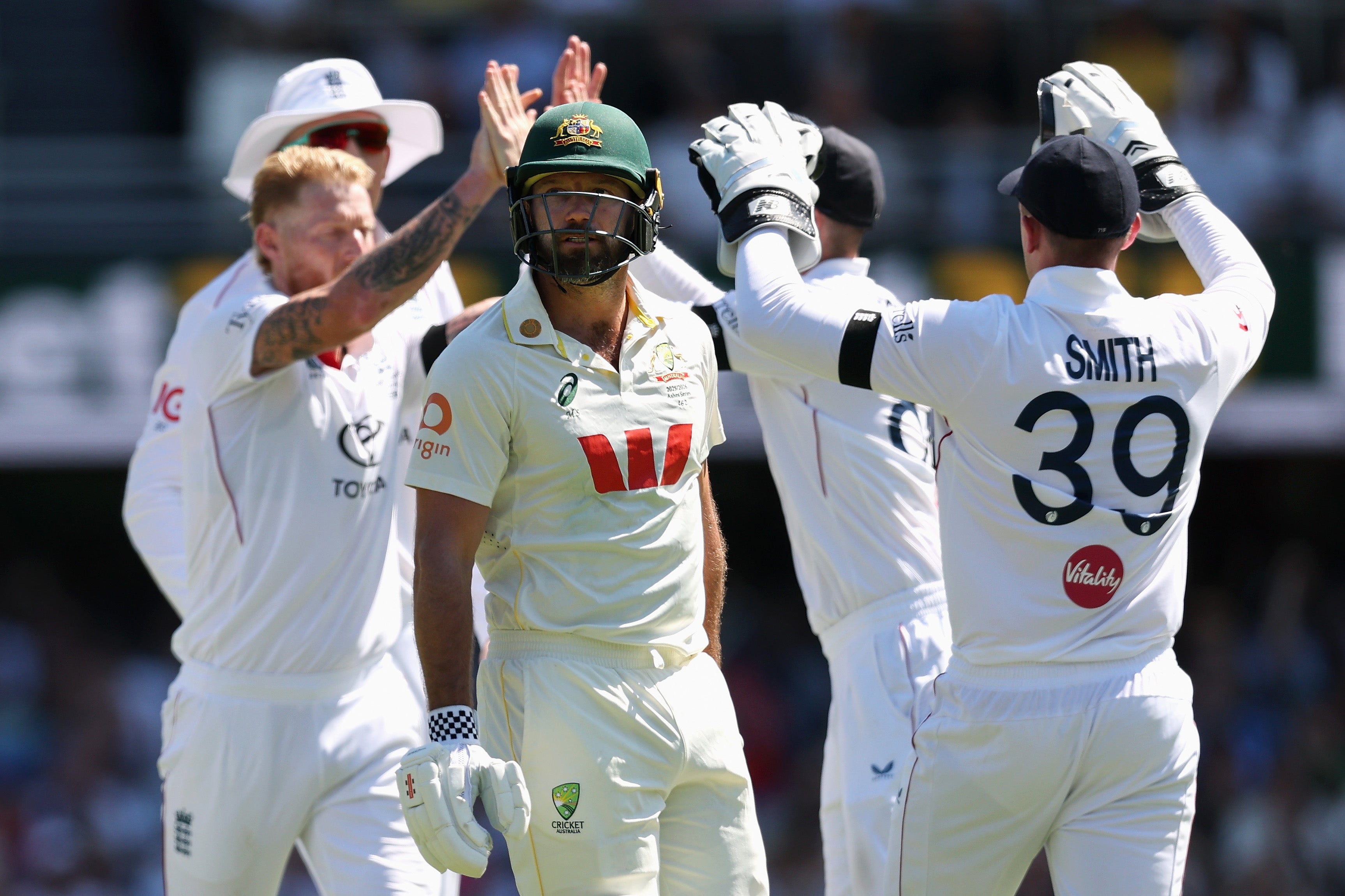 England strike! A bit of lift in the channel from Ben Stokes, a fairly loose, hard-handed drive from Michael Neser and a safe snag from Jamie Smith behind the stumps. A partnership of 54 is broken.