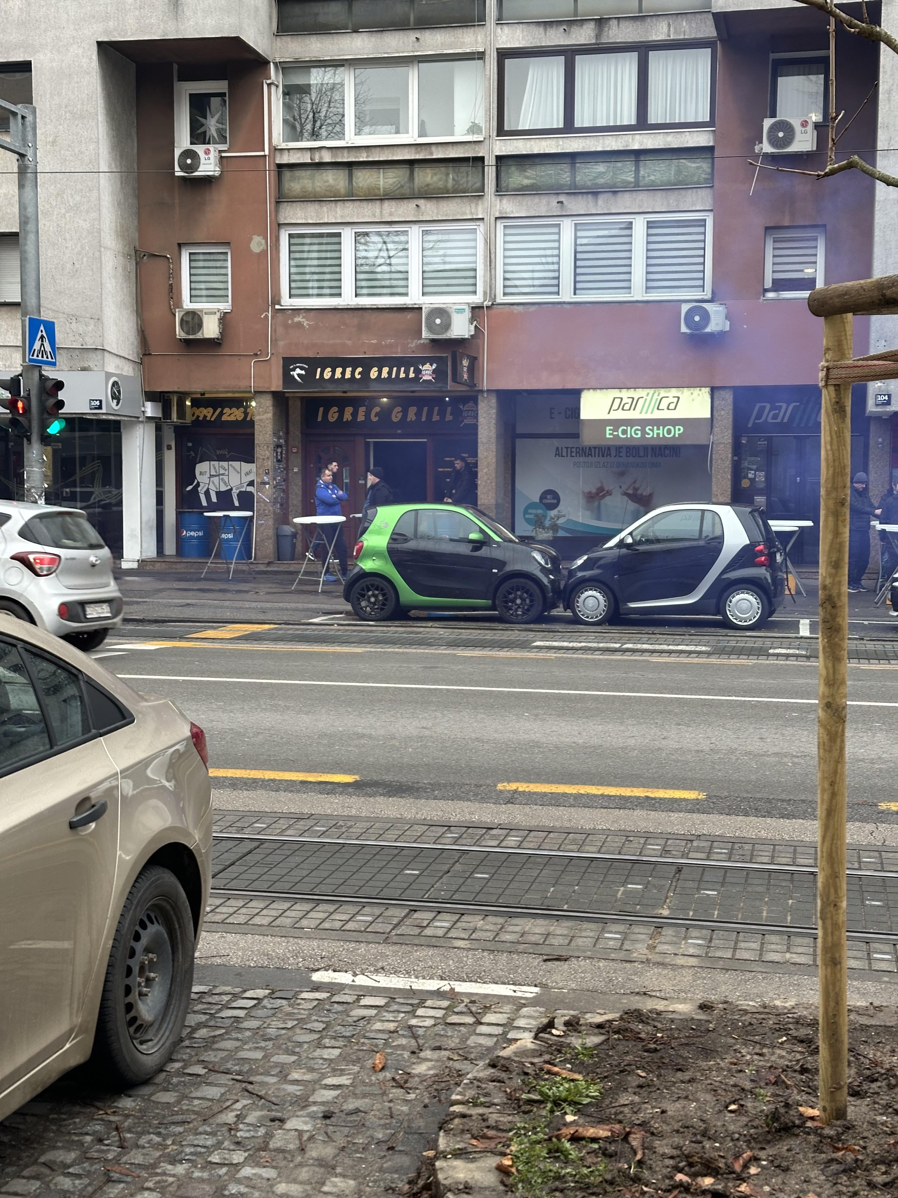 Ovo je prvi slučaj da vidim pametno parkiranje koje iskorištava dimenzije Smarta. Inače kreteni parkiraju okomito, u odnosu na druge aute, jer su mali pa stanu. I onda strše na ulicu.