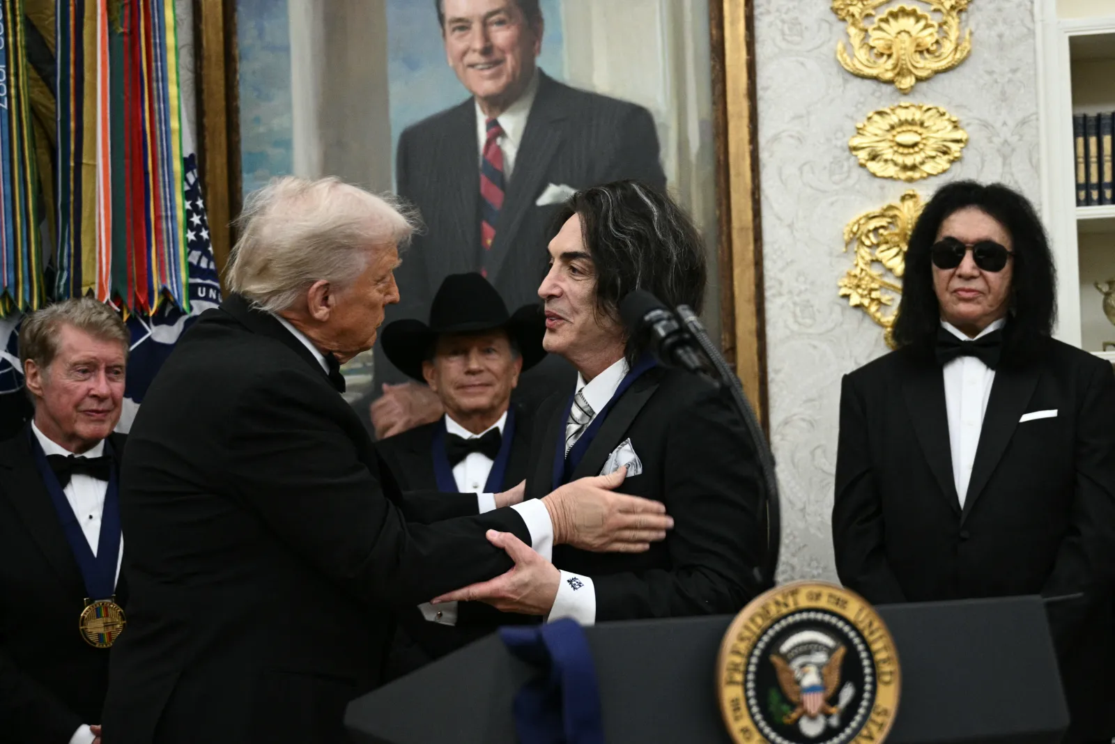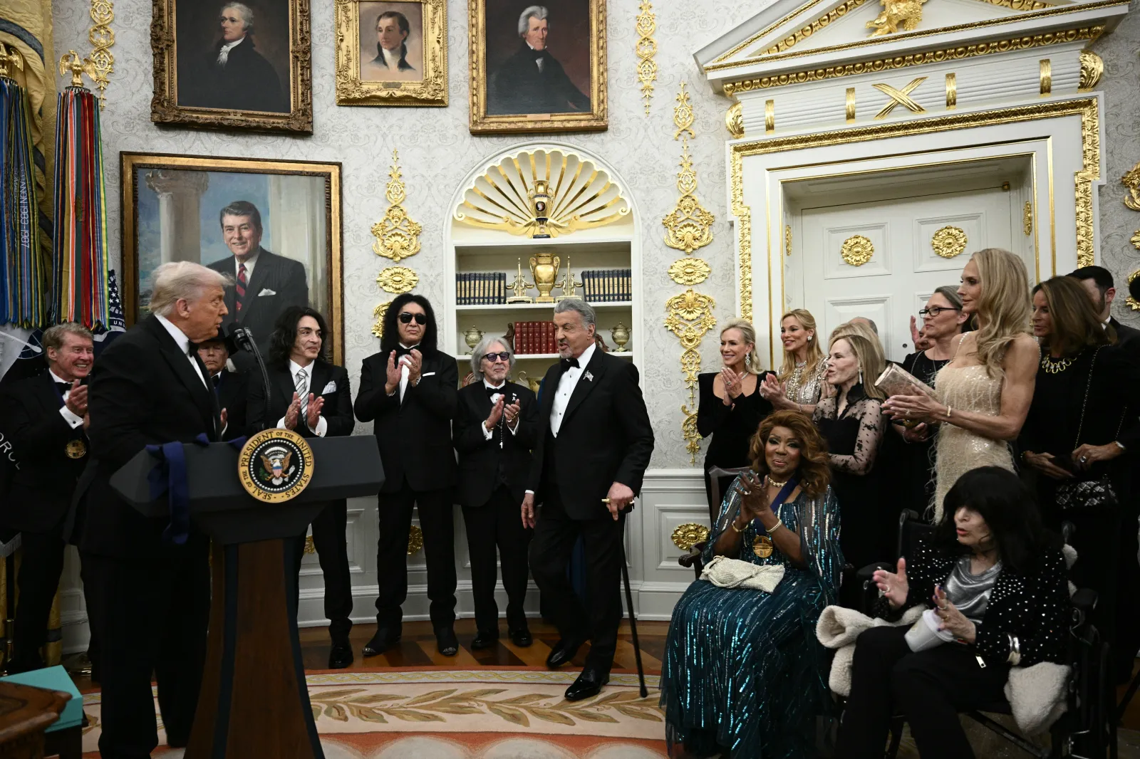 President Donald Trump presented the 2025 Kennedy Center honorees with their medals during a Saturday ceremony in the Oval Office, calling the group “perhaps the most accomplished and renowned class” ever assembled.