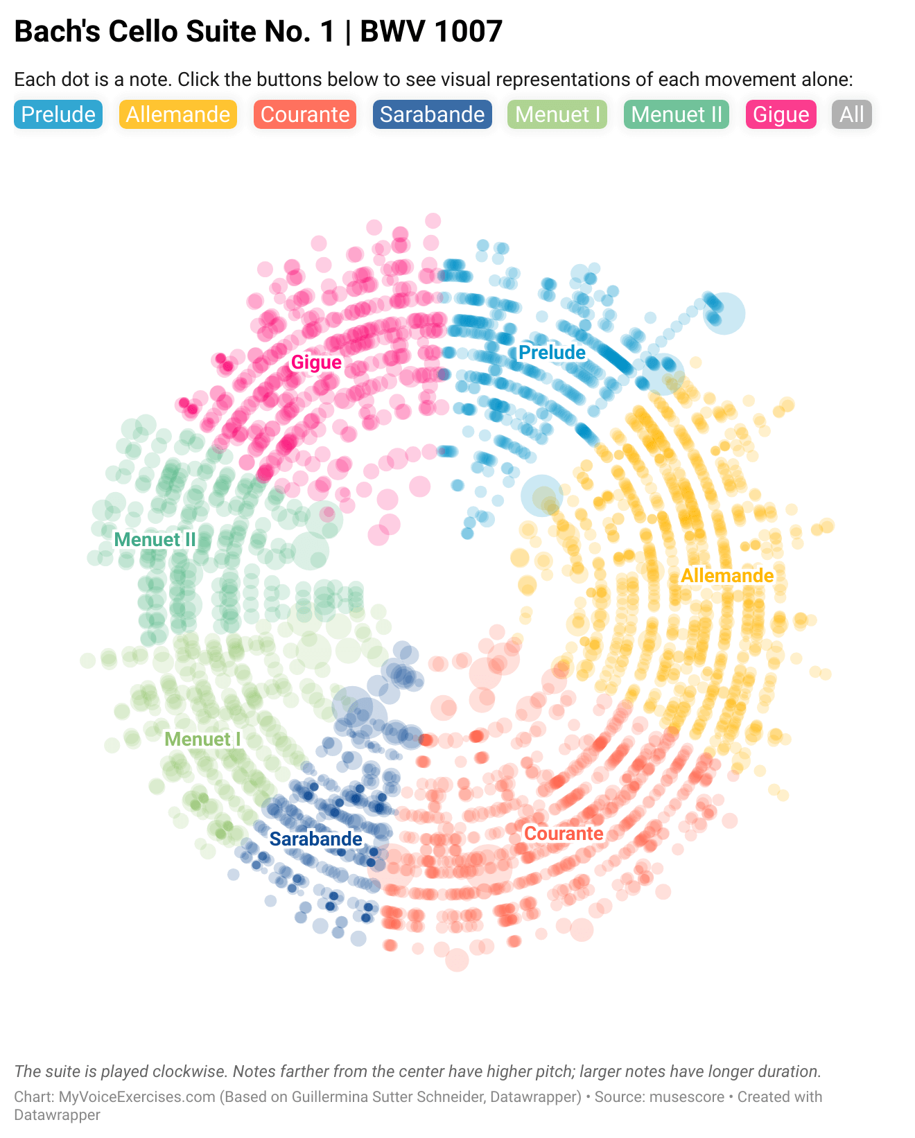 Visualizing Bach’s Cello Suite No. 1 Posted by Icy-Papaya-2967 Tags:DataData Is BeautifulDataIsBeautiful 2 comments Music looks like a circle? Wow Fun fact, the grand marimba goes down to the low C of a Cello so it’s really common for percussionists to study and play Bach’s cello suites. Sounds cool too. Comments are closed.