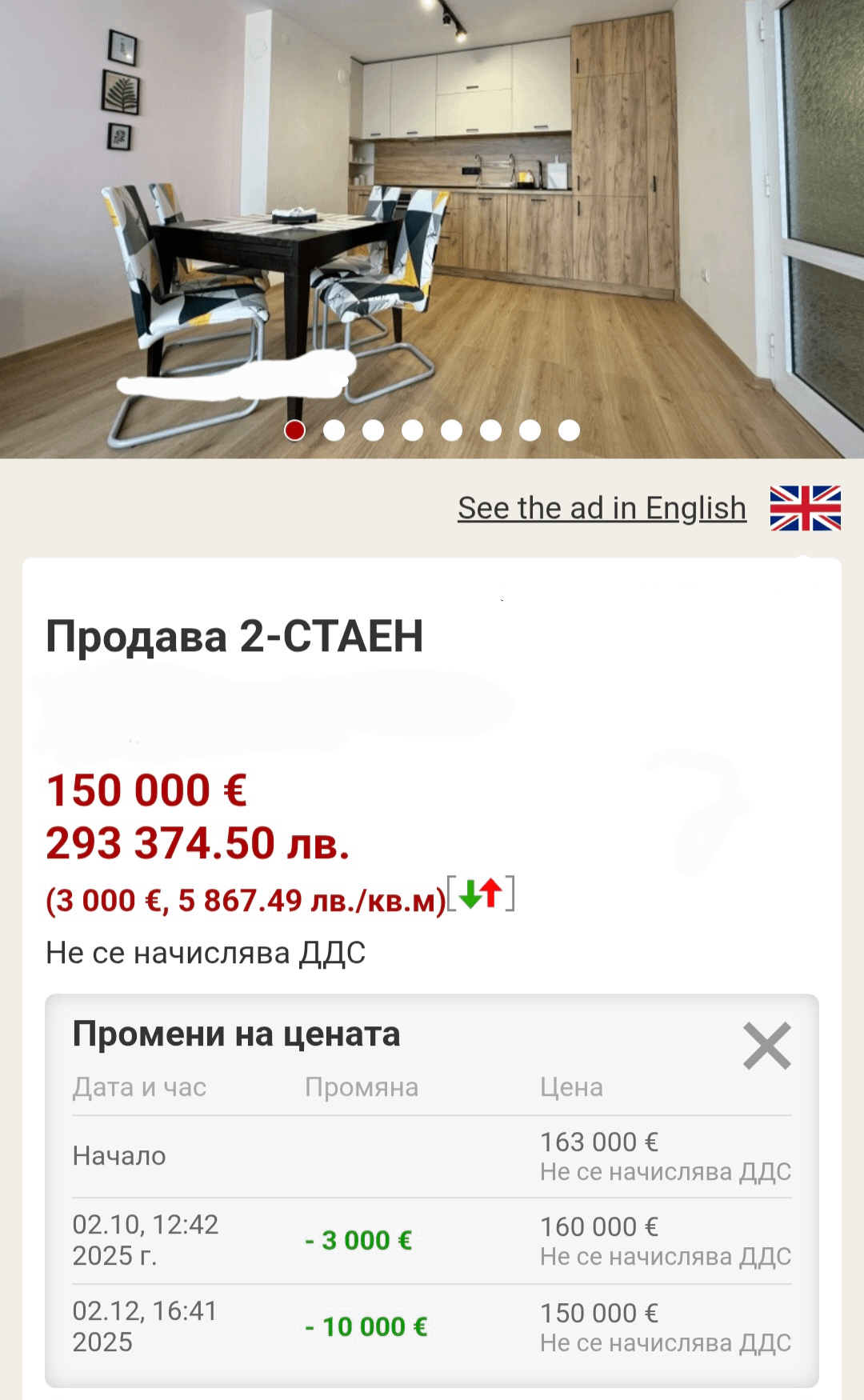5. Странно, пак ми изглежда 300к лв цената 🤔 ако беше спаднало от 300 на 200 – да, има намаление, ама да свалят някакви жълти стотинки и да го наричаме “спад” 🧐