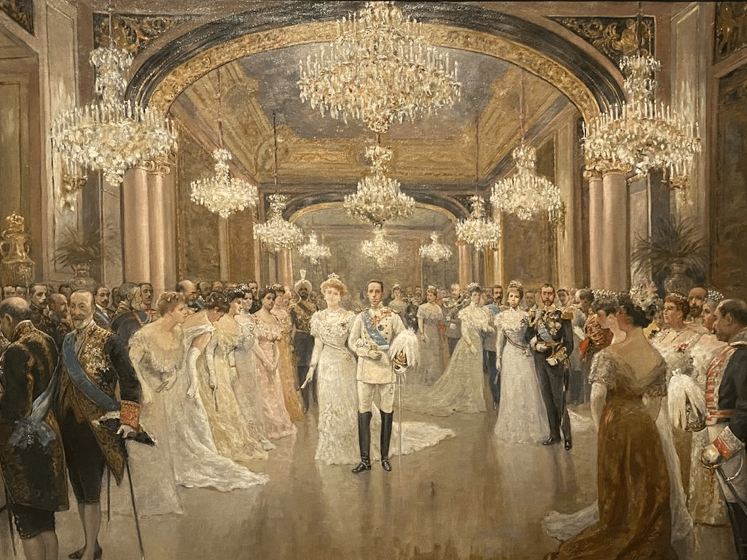 The exhibition begins with Victoria Eugenie’s childhood as the granddaughter of Queen Victoria, born at Balmoral in 1887 and raised within the structured world of the English court. Known as “Ena” to her family, she grew up between Windsor, Balmoral, Buckingham Palace and Osborne House, until the deaths of her father in 1896 and Queen Victoria in 1901 brought her and her mother, Princess Beatrice, to Kensington Palace. Her debut at court in 1905 marked the beginning of the young princess’s life in London society.
