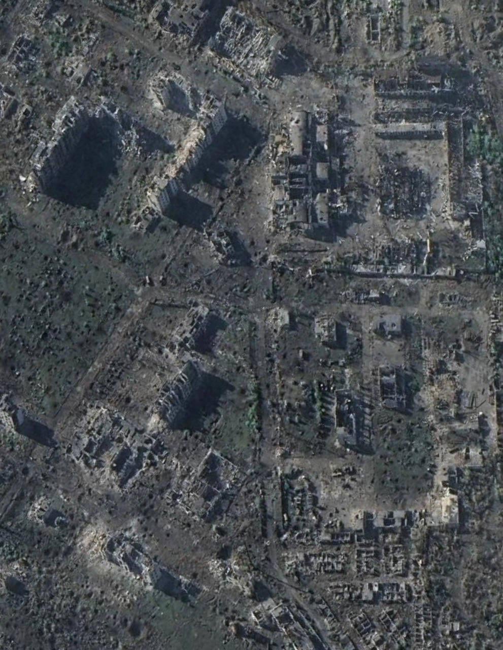 Satellite image of the ruined and completely destroyed Ukrainian city of Chasiv Yar – in the Donetsk Oblast. It had a population of around 12,000 residents.