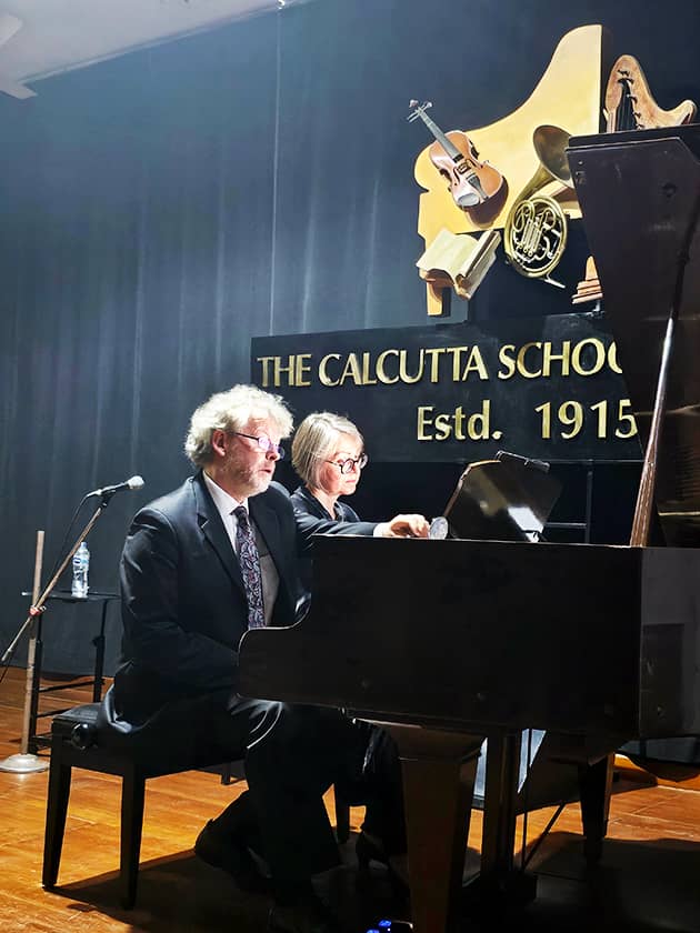 Sandre Hall at the Calcutta School of Music recently received a musical gift from Lithuania on World Pianist Day. On the occasion of 150 years of the birth anniversary of the Baltic nation’s national icon of music and visual arts, Mikalojus Konstatinas Ciurlionis (1875-1911), a piano duet was presented by Duo Zubovas.