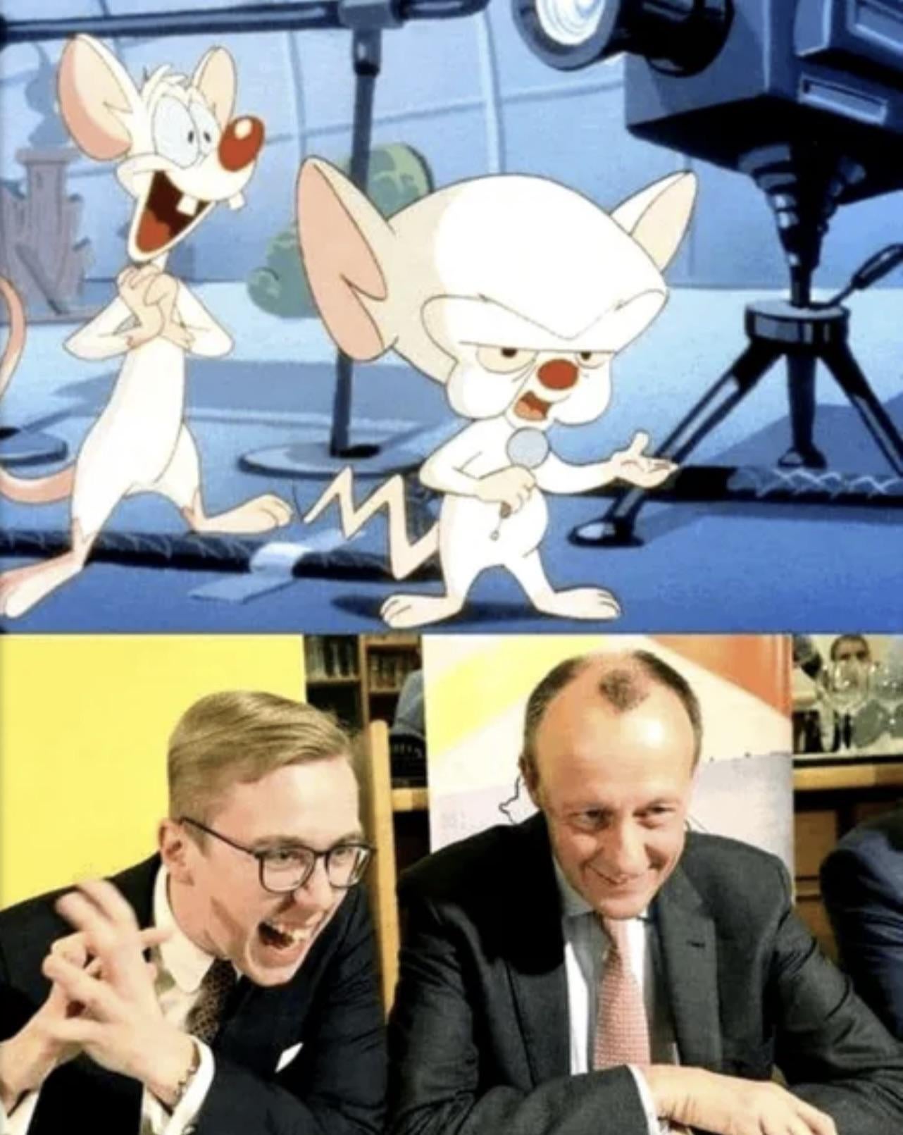 Pinki und the Brain haben menschliche Gestalt angenommen 😂 by Legitimate_Guest8611 Tags:Deutsche MemesMemes 7 comments >Narf Philipp Amthor vermutlich Wo _Brain_? Beleidige nicht Pinky und der Brain.  “Was machen wir heute Abend, Brain?” ist das nicht ne beleidigung für brain ? der hatte wenigstens einen plan … Müssen diese Beleidigungen immer sein? Pinky und Brain haben das nicht verdient … Comments are closed.