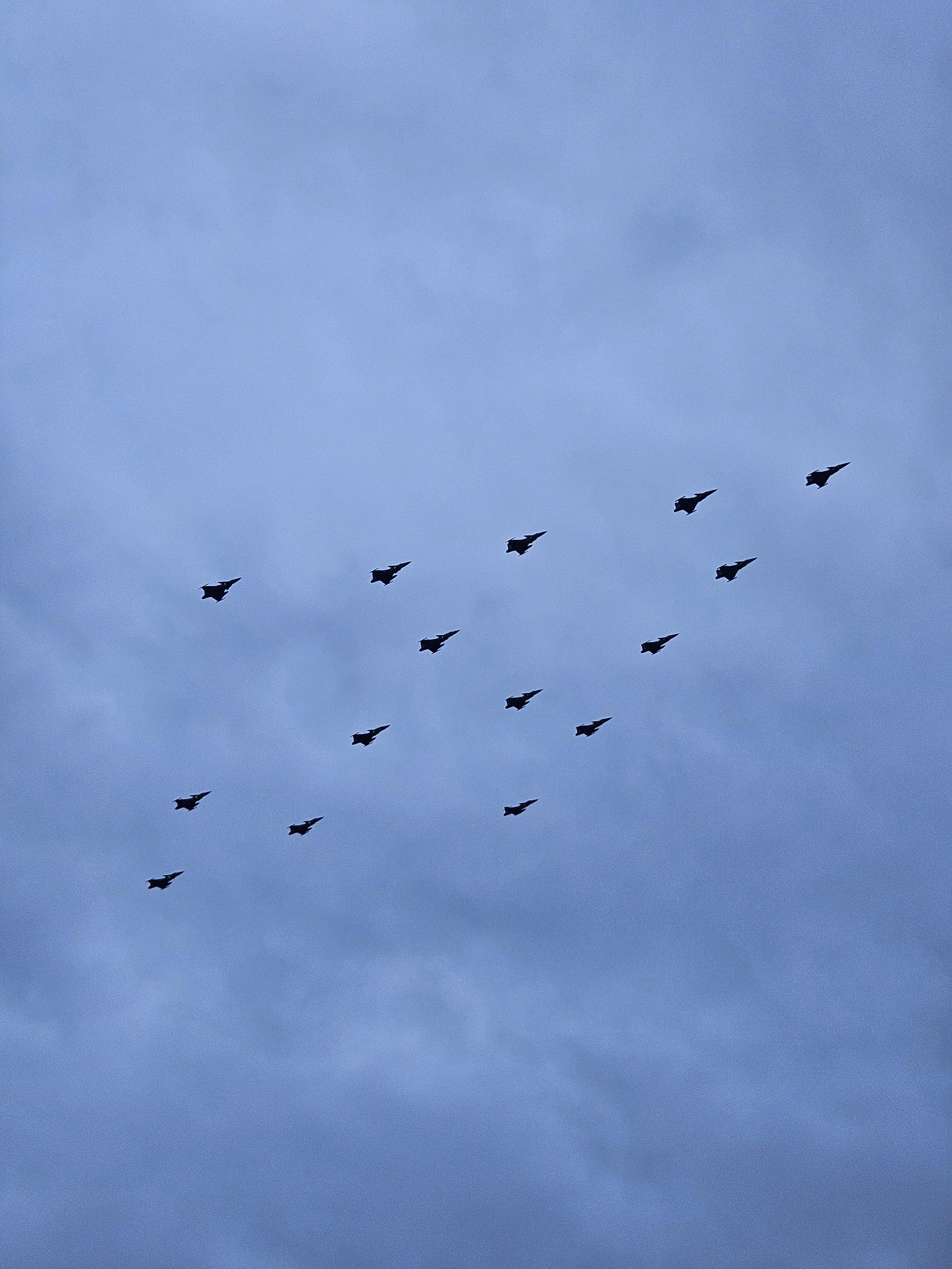 Hörde dom passera över stan och jag trodde det var ett tåg som spårat ur först. Helvete vad dom låter.