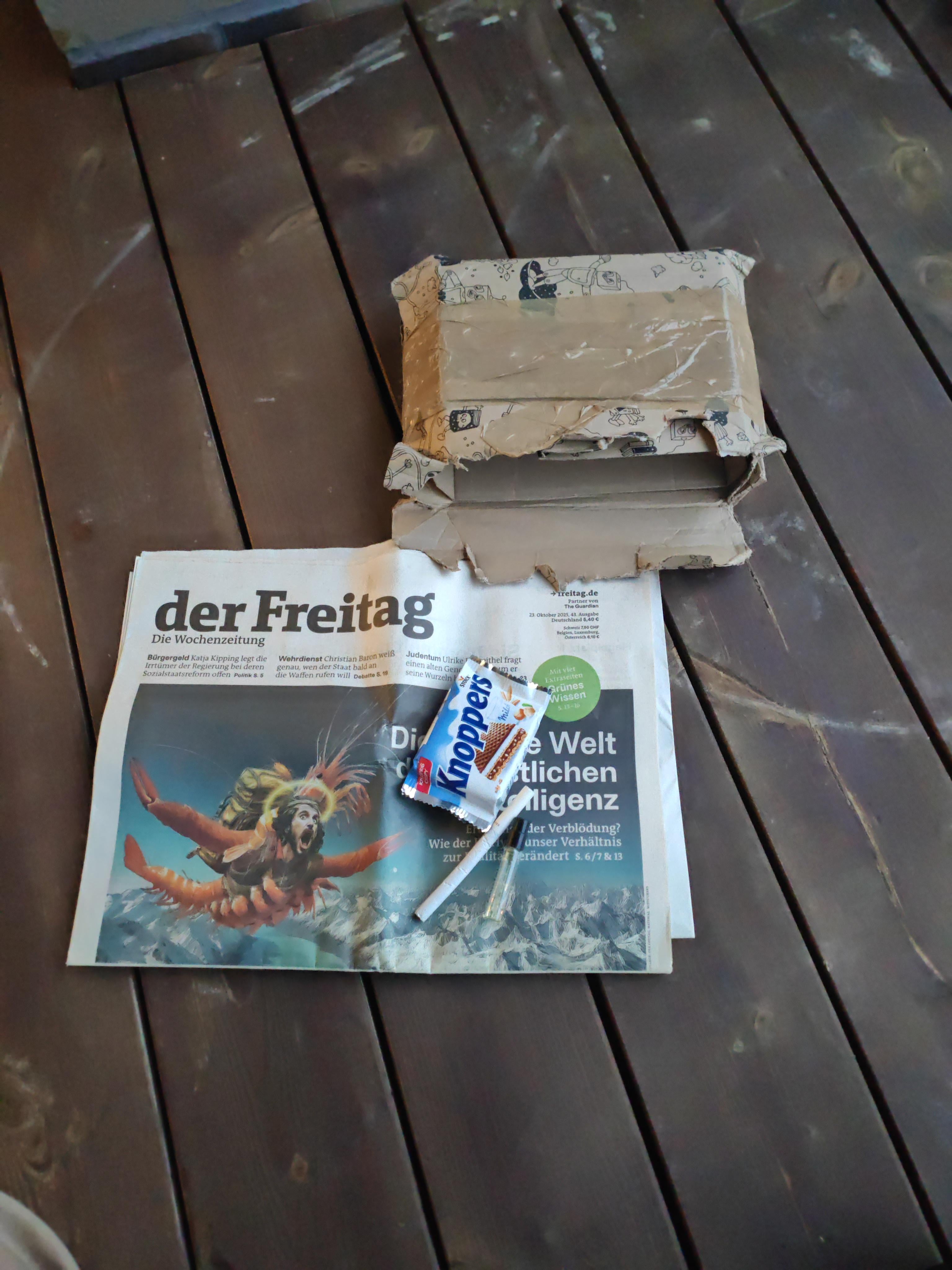 Then you have a newspaper, a Knoppers and a Cig’ sent for free
