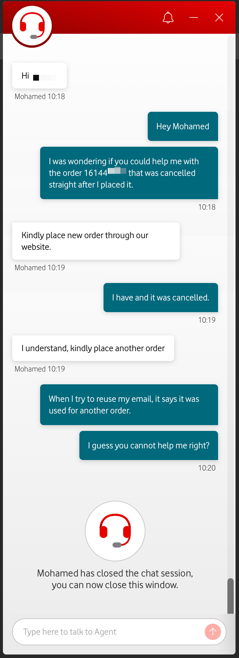 Hi Mohamed here. Could you kindly place another order?