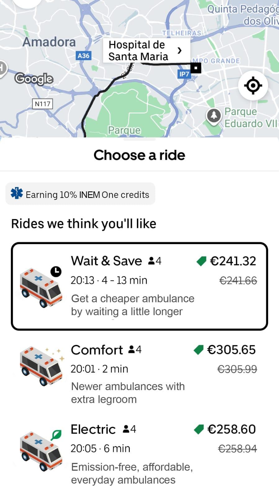 8. Não era mal pensado, dado que a maioria das ambulâncias têm a função de táxis caros.