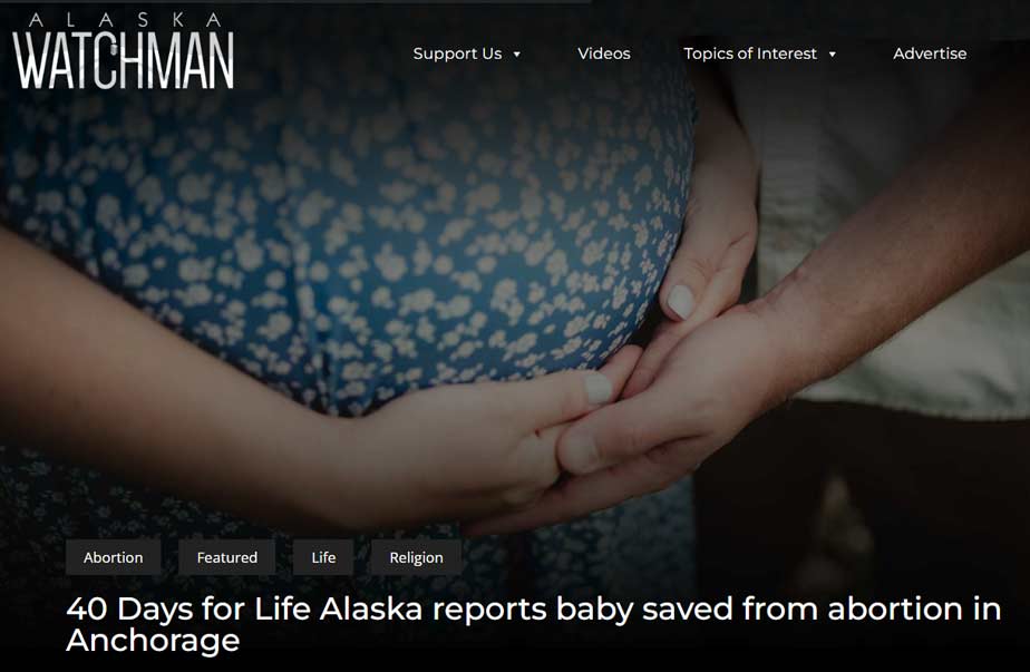 Alaska completed its most recent 40 Days for Life prayer campaign last month, in which pro-life advocates reported that at least one baby was saved from abortion after a couple exited the Anchorage Planned Parenthood center and told those praying outside that they had decided to let their baby live.