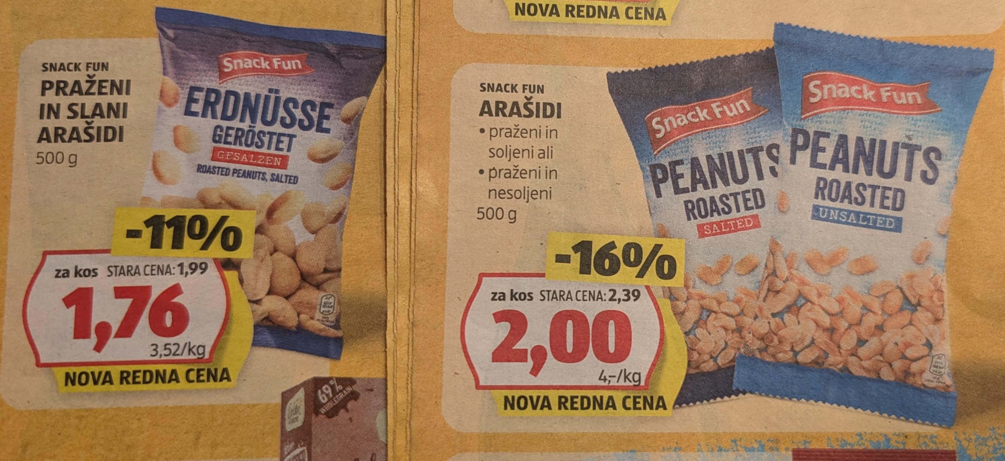 V istem katalogu, par strani naprej, ista teža. by smokicar Tags:slovenia 10 comments Prevod v anglescino in tiskanje locene embalaze za tuji trg ni zastonj. 😀 Poskusi obe vrecki, pa bos razumel zakaj razlika 😉 Mogoce drug dobavitelj. Drugo poreklo. A je sploh vredno komentirat za 0.24€ razlike? Obožujem arašide, ampak ti od Hoferja majo vsakič drugačen okus. Kupiš 5 vreč in je kot da bi kupil 5 različnih izdelkov. Te ta levi so večji na sliki, verjetno druga sorta arašidov. Ja pa čaki mal no. A si nepismen? Kako ne štekaš? /s eni so proizvedeni v Indiji in pakirani na Poljskem, drugi pa proizvedeni v Indiji in imajo napisano polnjeno na Madžarskem 🤷🏻♂️ lahko da so eni suho praženi, drugi pa na olju na olju praženi so bolj mastni, sploh tej iz hofer/lidl so ogabni To sta 2 različna artikla. Eno so praženi in slani, drugi sta pa isti pridejo v škatli iz katere izbereš ali slane ali ne slane Comments are closed.