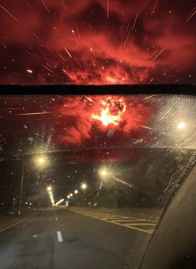 Första bilden är obvs AI, vart är ljuset på marken? Och det är en konstig skarp linje mellan vad jag antar är en trädgräns och själva explosionen