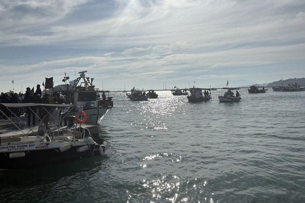 Fishermen blocking the port of Volos by sea with their boats on Wednesday, December 10. (photo credits: 902.gr)