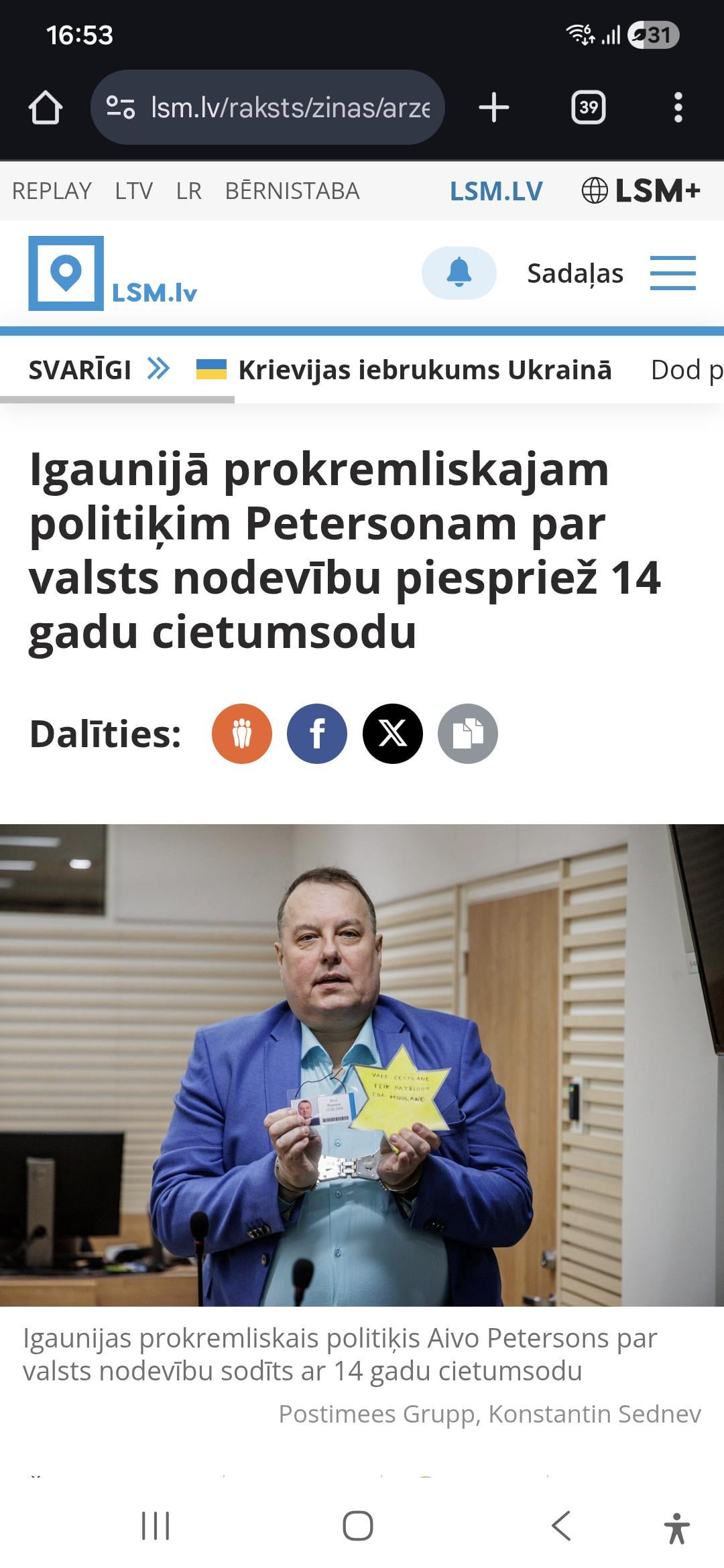 Ja kāds vēlas pilno rakstu links šis https://www.lsm.lv/raksts/zinas/arzemes/11.12.2025-igaunija-prokremliskajam-politikim-petersonam-par-valsts-nodevibu-piespriez-14-gadu-cietumsodu.a626002/