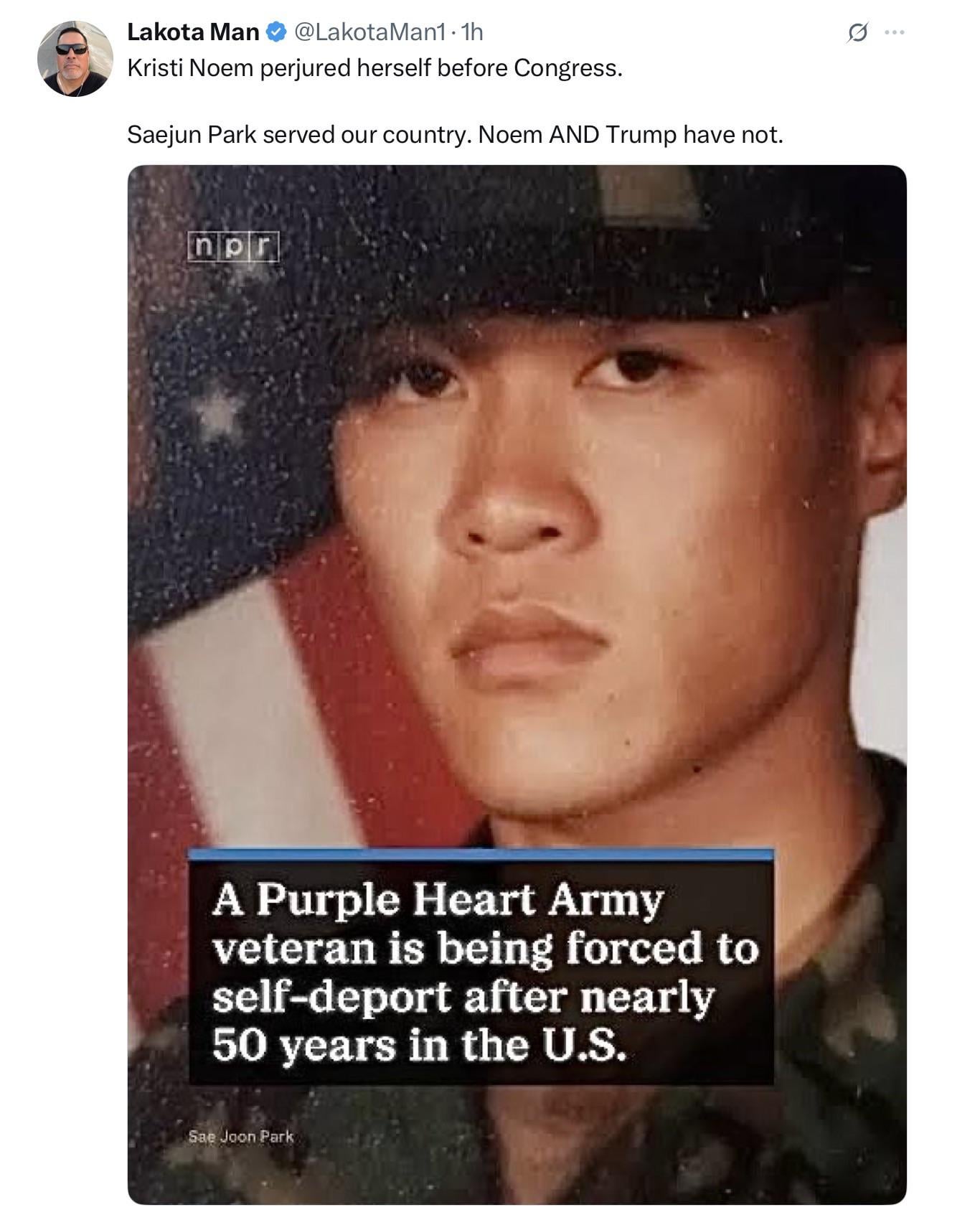 Kristi Noem lying about deporting a U.S. citizen Purple Heart veteran is peak clown politics. She’s out here bragging like she personally kicked an American hero out of America. Next she’ll claim she deported George Washington for not having the right paperwork.