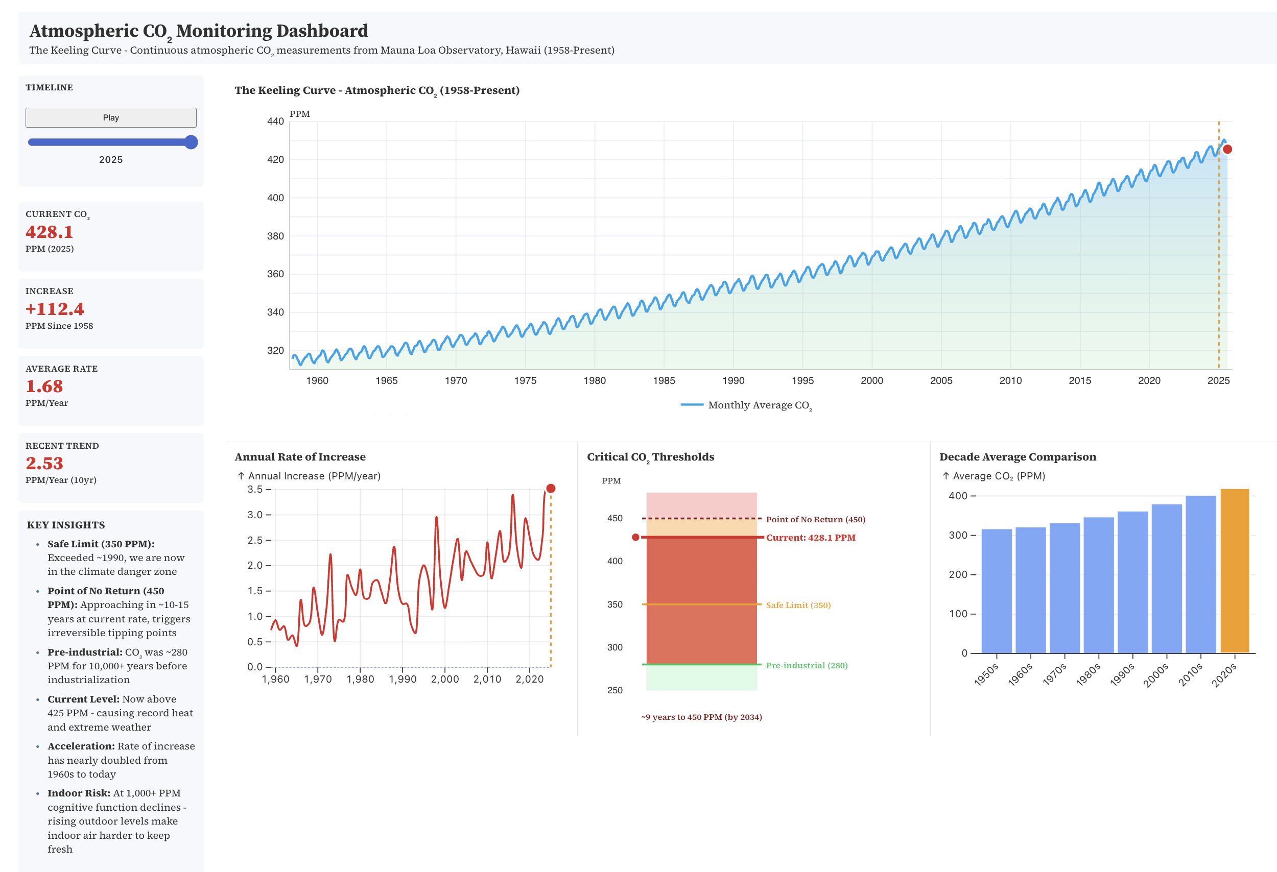We built an interactive dashboard to make the long-term CO₂ signal impossible to ignore.