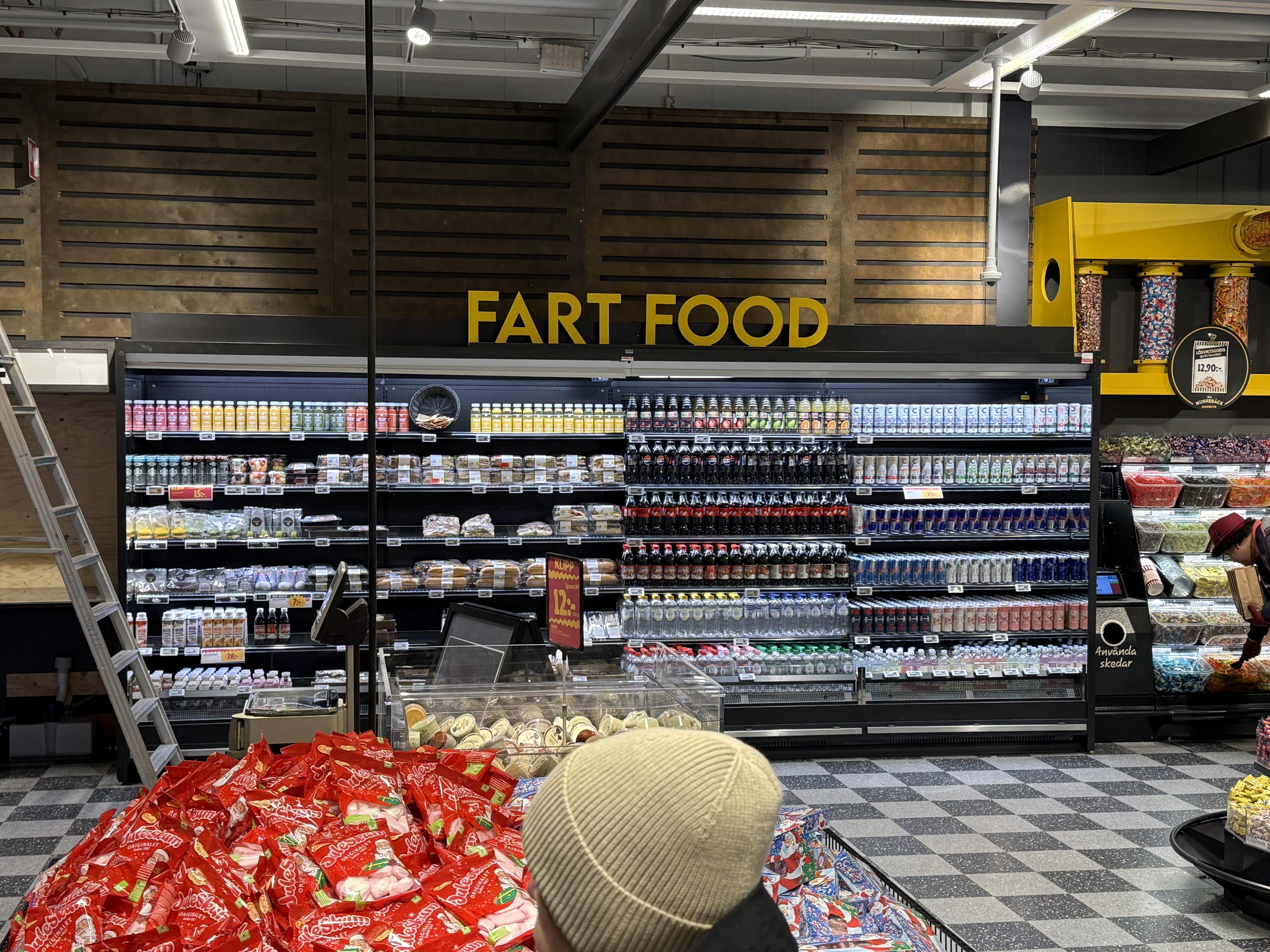 3. Proteindryck, Celsius och färdiga mackor? Ser inget fel i skyltningen. Fart food, fart food indeed så att säga.