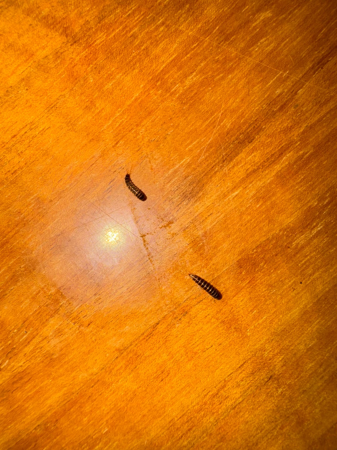 ich bin mir nicht ganz sicher, da die 2 etwas länglicher & weniger haarig als auf den Bildern aussehen, die ich online finden konnte. Saßen vermutlich am Boden unter einer Kiste oder in einem kleinenw Korb aus Naturfasern. Diese standen auf dem Tisch & nach dem Wegräumen wandten sich die beiden auf einmal auf dem Tisch.