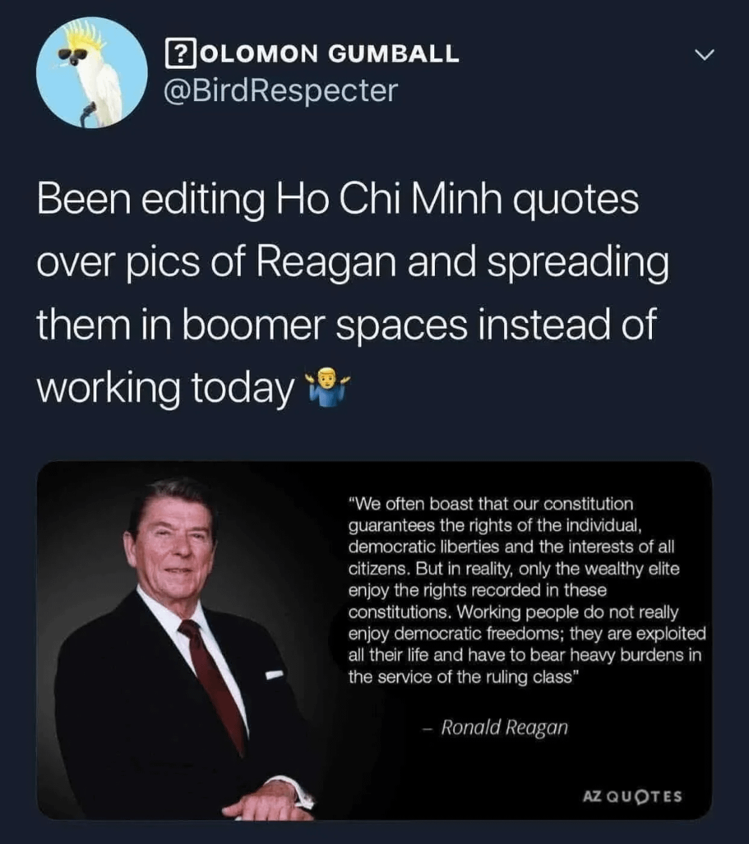 Reagan was never for the people, so most wouldn’t fall for this. (I hope)