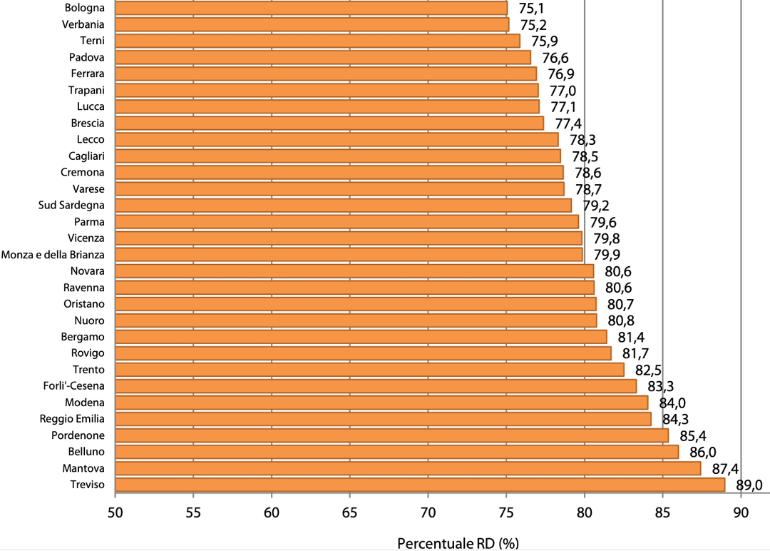 Report ISPRA 2025 – Dati % raccolta differenziata per regione, città metropolitana, top 30 province italiane a fine 2024