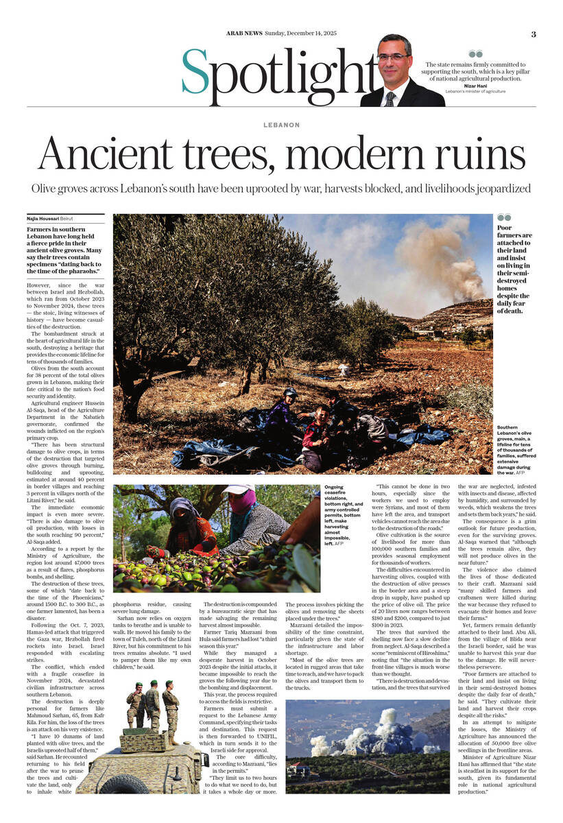 BEIRUT: Farmers in southern Lebanon have long held a fierce pride in their ancient olive groves. Many boast that their trees, which stretch along the border with Israel, contain specimens “dating back to the time of the pharaohs.”