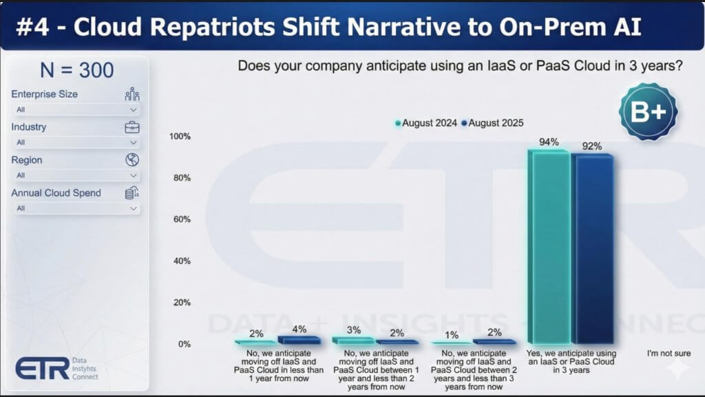 Prediction 4: Cloud repatriates shift their narrative to on-premises AI (Grade: B+)