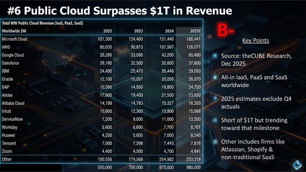 This is theCUBE Research data, excluding calendar fourth quarter 2025 actuals. We’re at about $980 billion — short of the trillion. “Other” is big and includes companies such as Shopify Inc. and Atlassian Corp. and other nontraditional SaaS, which is why it’s so large.