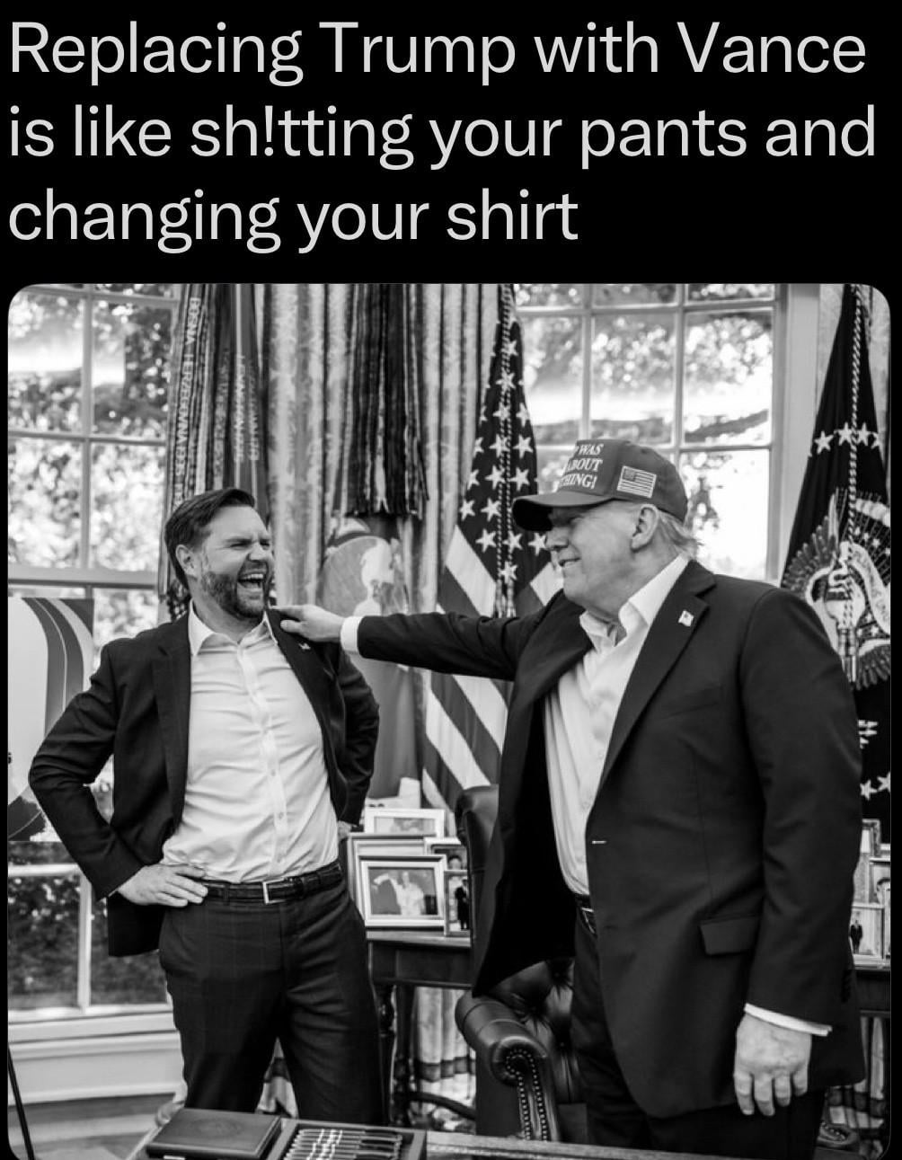 One cannot replace Trump with Vance. Vance is a side show. Hes about as ready for Prime Time as Sarah Palin was. Which is to say, not at all.