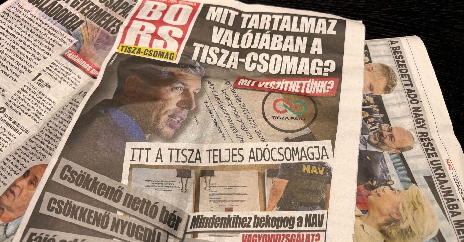 Míg az előző, szintén tizenhat oldalas különszámot a háborús riogatásra szánták, ez most az állítólagos, a Tisza Párt által sokszor cáfolt úgynevezett „Tisza-csomagnak” szentelik.