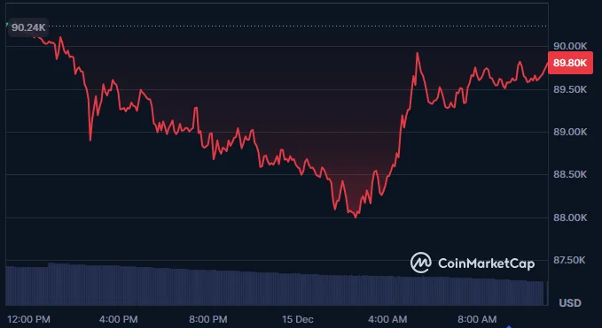 Bitcoin fell below $90,000 over the weekend, adding pressure to alternative cryptocurrencies. Bitcoin is currently trading at around $89,800, suggesting a 0.51% decline in the last 24 hours.