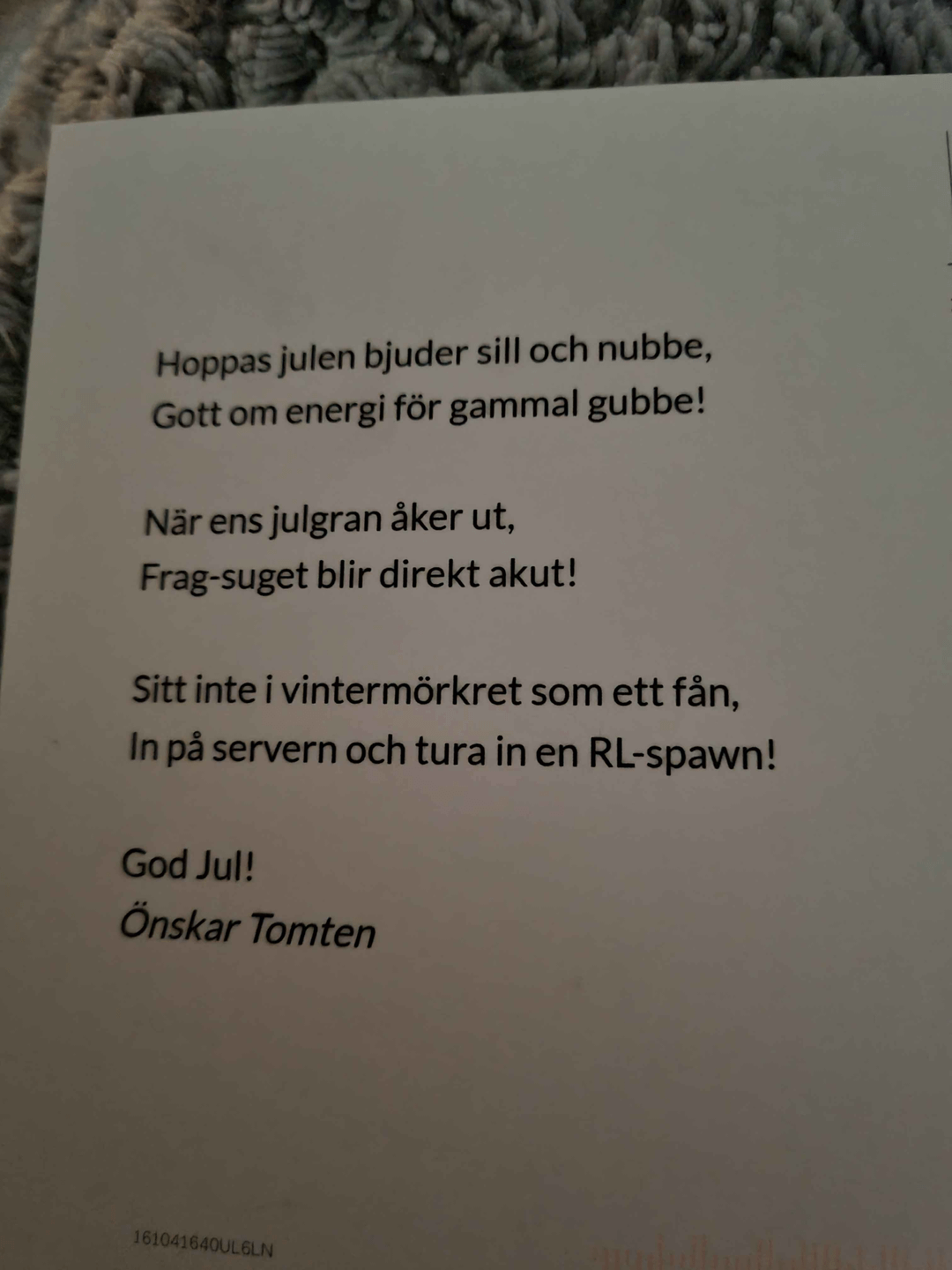 Bifogar ett julkort som gått ut till svenska Quakers som fortfarande gibbar, från självaste Tomten.