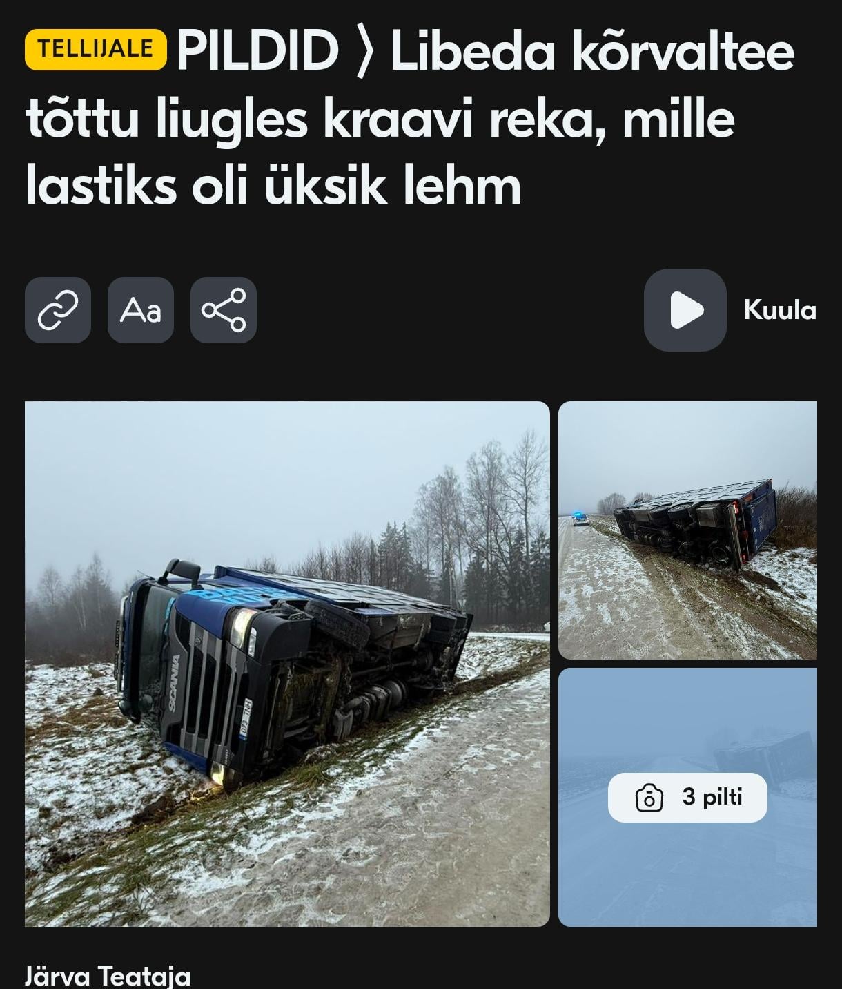Nali naljaks, aga kõrvalteed olid täna hommikul tõesti libedad. Ise paar tundi tagasi sõites oli ka sirgematel teelõikudel maksimaalne turvaline kiirus 50 km/h. Õnneks sulab hetkel see löga teedel üsna kiiresti.