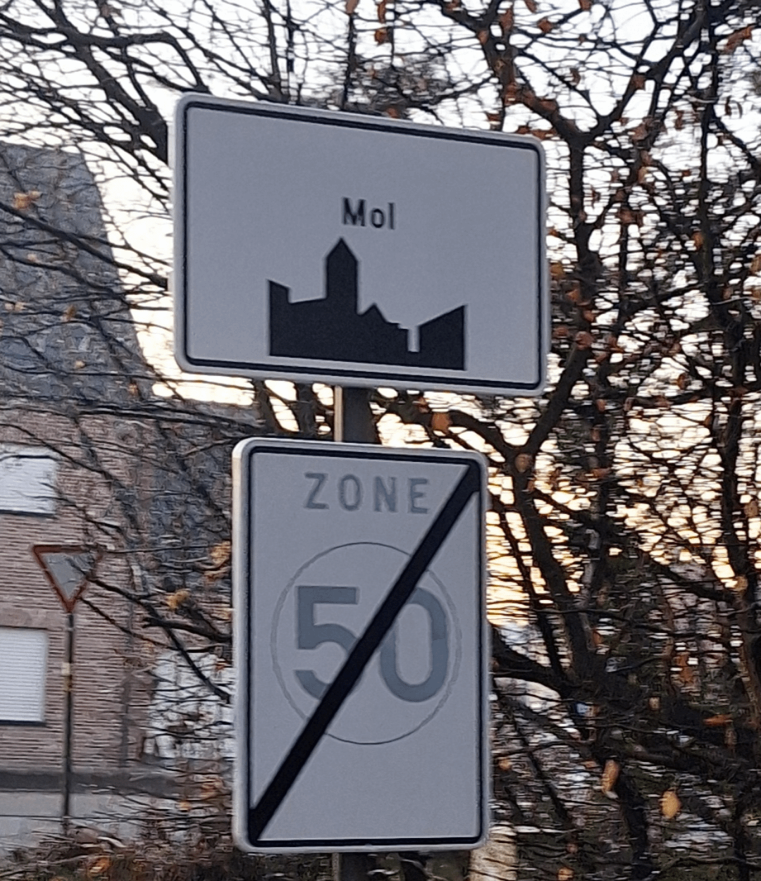 Dit klopt volledig. Voor het bord is de snelheid beperkt tot 50km/u door de snelheidszone. Voorbij het bord is de snelheid beperkt tot 50km/u door de bebouwde kom. Die verschillende zones worden duidelijk afgebakend door oa deze borden, zodat er geen of minder twijfel is over de toegestane maximumsnelheid en de precieze artikelen van de verkeersregels waaronder die valt.