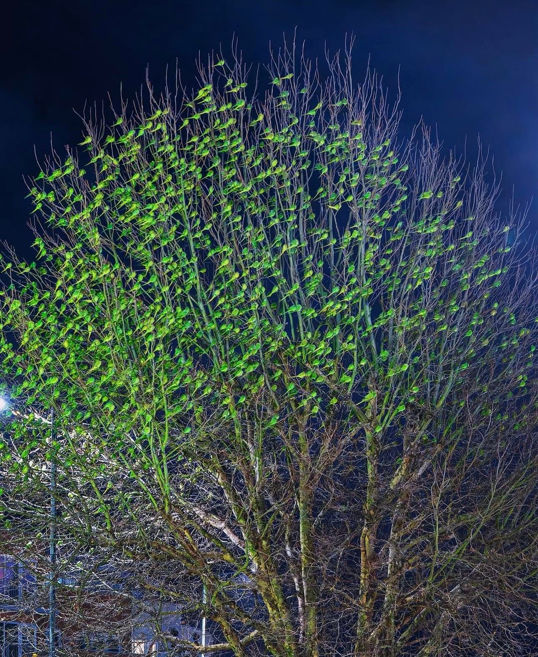 Is that the Purley way? There are some tree’s up there that look like this at night when all of the parakeets come in to nest for the night. Absolutely insane numbers. I remember reading some report that said the population has become too large now to eradicate. You have to wonder the impact this has had on native birds as the parakeets are clearly out competing everything else.