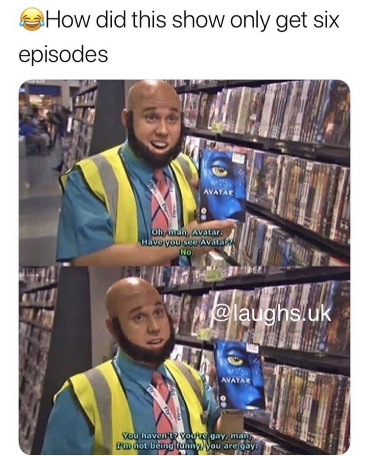 deadass what could possibly be so funny about “You haven’t seen X? You’re gay”