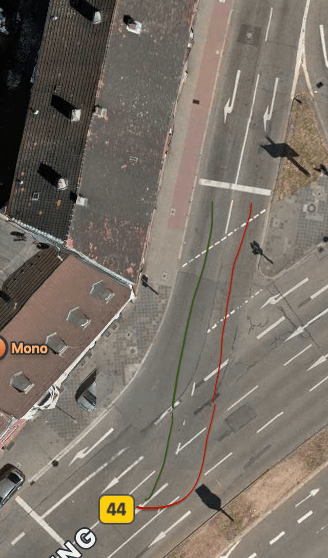 Sorry for the bad image. The image shows two lines drawn – Green & Red Color. I am represented by the Green color. The red car is a Polish-registered car.