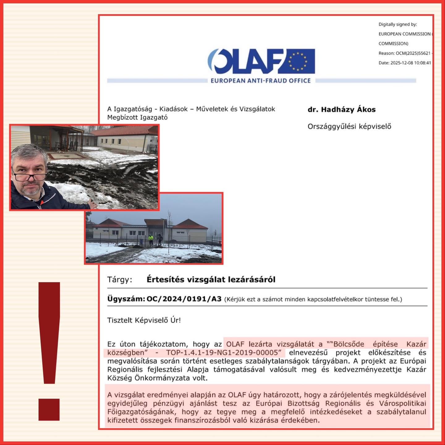 Na ugye… Az Európai Csalás Elleni Hivatal (OLAF) is törvénytelennek ítélte meg a kazári 670 milliós (!) 12 fős (!) "mini bölcsőde" építését. Azt javasolják, hogy Brüsszel ne fizesse ki a pénz nagy részét.