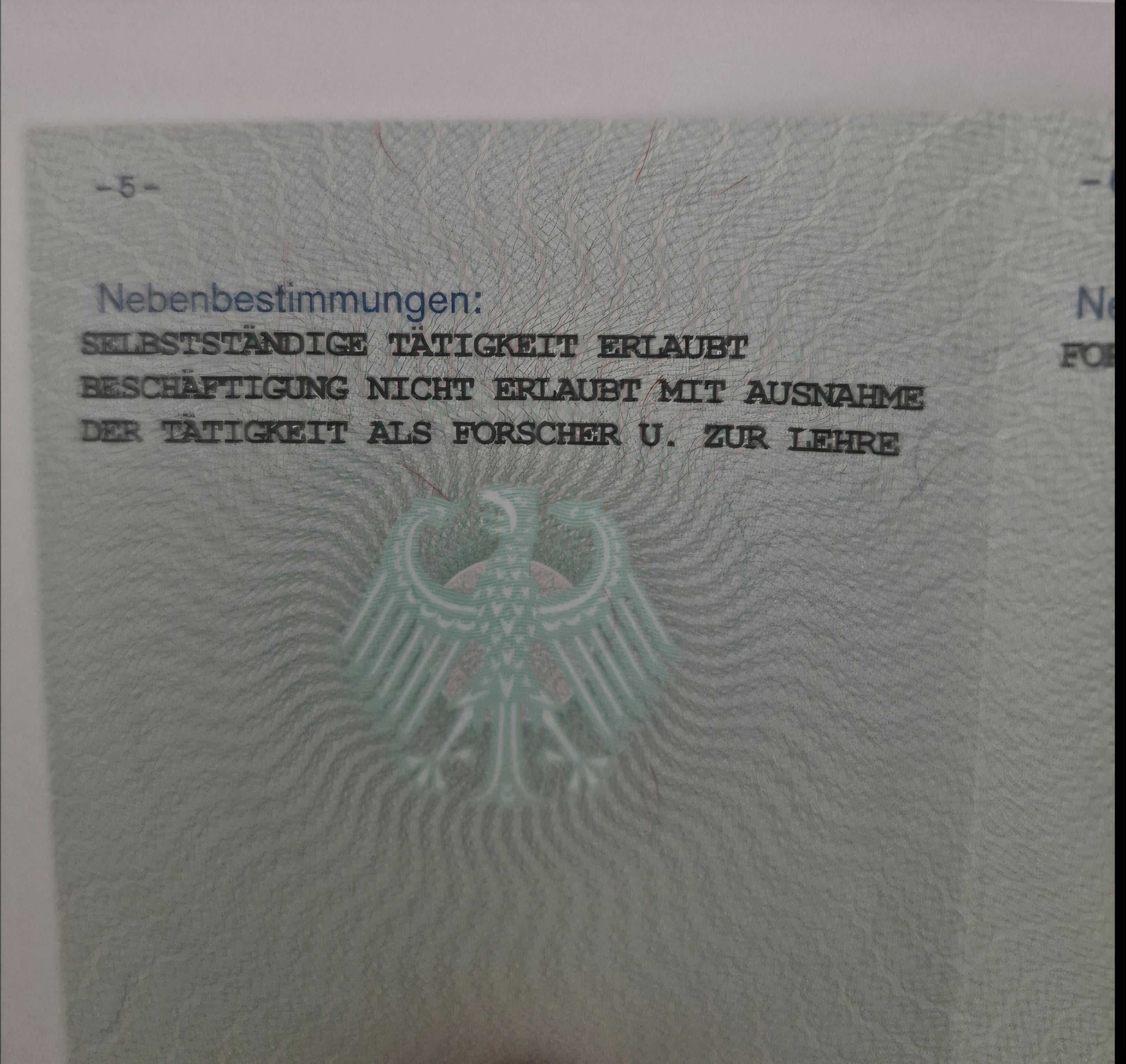 Very important note: keep this part super sacred. You will get into troubles if you cannot present it at your next visa renewal. Some do not issue this part. But still bring one into troubles if the not existing document cannot be presented. Ask me how I know. They give it to you and they take it from you. And only with this piece of paper you are allowed to work in science and or teach. You are not allowed to work for another company. You are allowed to be a freelancer in anything. Without this paper you are doomed to be neglected. You stop existing (for them) and no one can save you to get another piece of paper. I hope you understand the importance of this piece of paper. I am dead serious. Do not lose it.