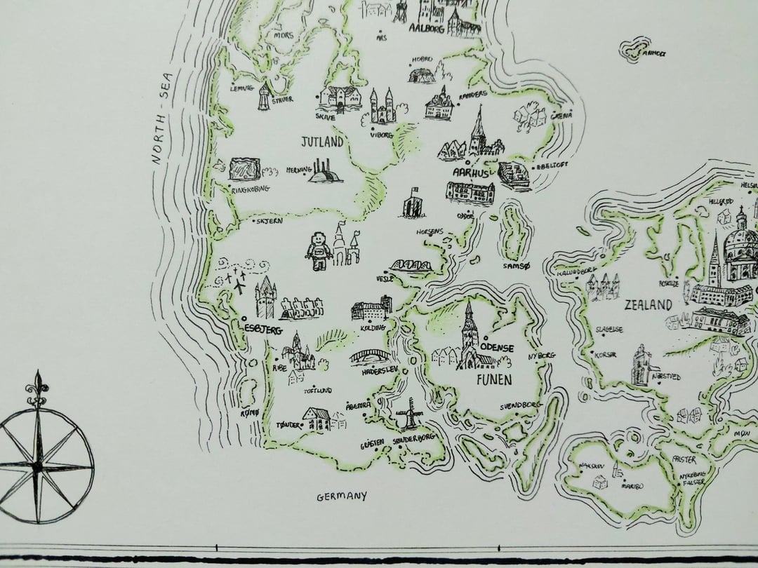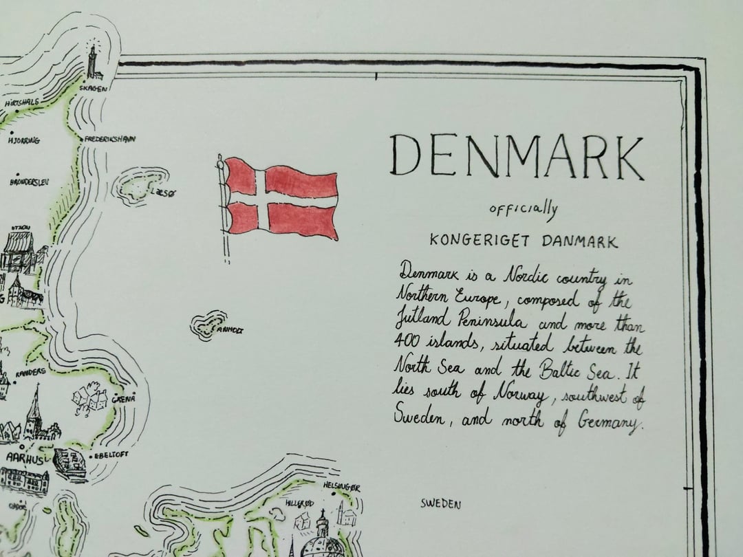 I was feeling like drawing something, so I came up with the idea of a map. I asked my sister to pick a random country, she chose Denmark. I hope you guys like it, it's my first time drawing a map, hopefully it can be better next time.