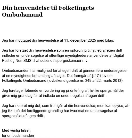 Folketingets Ombudsmand har været meget hurtig til at svare på min klage.