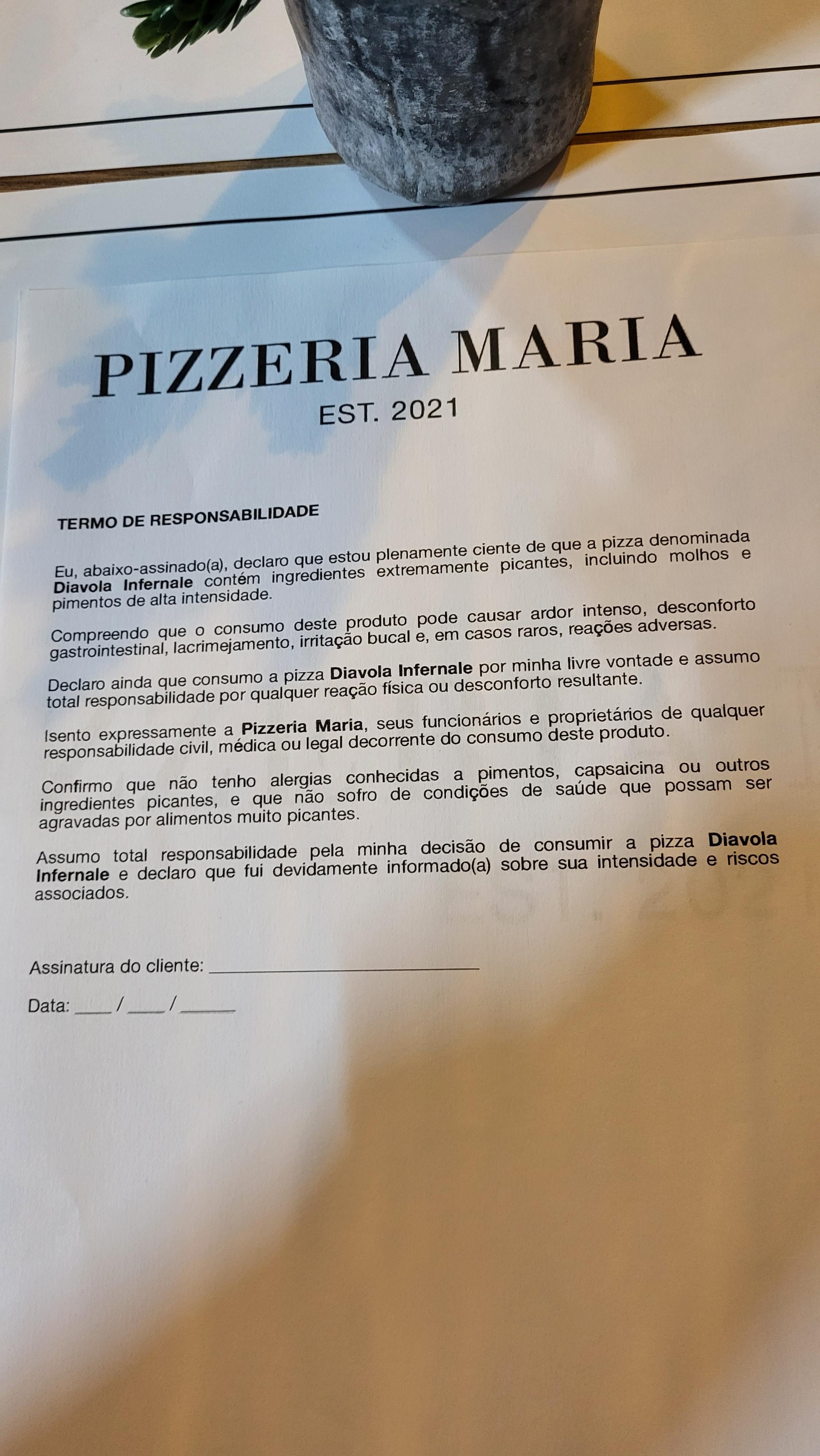 O ‘PIZZERIA MARIA’ agradece.