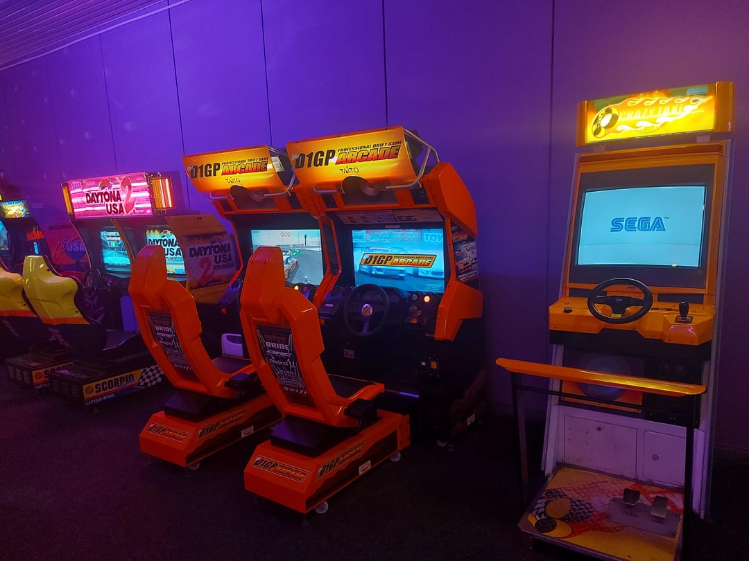 Maar er is nog véél meer te zien dan enkel flippers en retroarcade games. Zo heb je nog 2 airhockey tafels, een pooltafel 2 basketbalmachines en een gempusher gevuld met snoep (5 keer scheppen voor 1€). Mijn maat had die eens geprobeerd en we waren het er over eens dat er wel wat meer snoep in mocht. Soms schepte je, maar er was te weinig snoep om ook maar iets op te rapen. (Koop gewoon iets aan de kassa, keuze genoeg qua drank en eten aan democratische prijzen. Je mag het wel niet mee de arcade in nemen.) Verder hebben ze een mooie collectie aan racegames zoals Daytona USA 2, D1GP en mijn persoonlijke favoriet van vroeger, Crazy Taxi. Let wel dat het stoel gedeelte wat los zit dus ik zou er niet meteen met je volle gewicht tegenaan leunen. Verder wel zeer toffe race games. Ook staan er bij de racemachines nog een Terminator Salvation (man dat geweer weegt door na een tijd) en een Transformers cabinet waar je kan inzitten om wat decepticons af te schieten. In de linkse ruimte vind je nog een originele Terminator 2, Operation Wolf, Area 51 en ook nog een Time Crisis 2! Voor deze kast alleen zou ik al naar hier komen. De enige andere locatie met deze kast in België is de Activ in Tongeren. Echter… ook hier wat mankementen, het scherm van de linkse Time Crisis staat niet goed afgesteld waardoor het te veel ingezoomed is waardoor het soms zeer moeilijk is om bepaalde vijanden te raken. Voorts is de terugslag van dat geweer ook kapot. Dit was al zo het geval toen ik er een paar maand geleden al een was geweest. De rechtse kant werkt wel goed (al heb ik het gevoel dat het scherm te donker staat) en ik heb er mijn vorige highscore dan maar wat hoger gezet. (Voor zij die mij willen tonen dat ze beter zijn, go ahead) Ook wil ik nog de Star Wars Battle Pod vermelden. ZEKER SPELEN! Heel chique kast, enkel jammer van die roze schijn op het scherm door de neonverlichting die erachter staat.