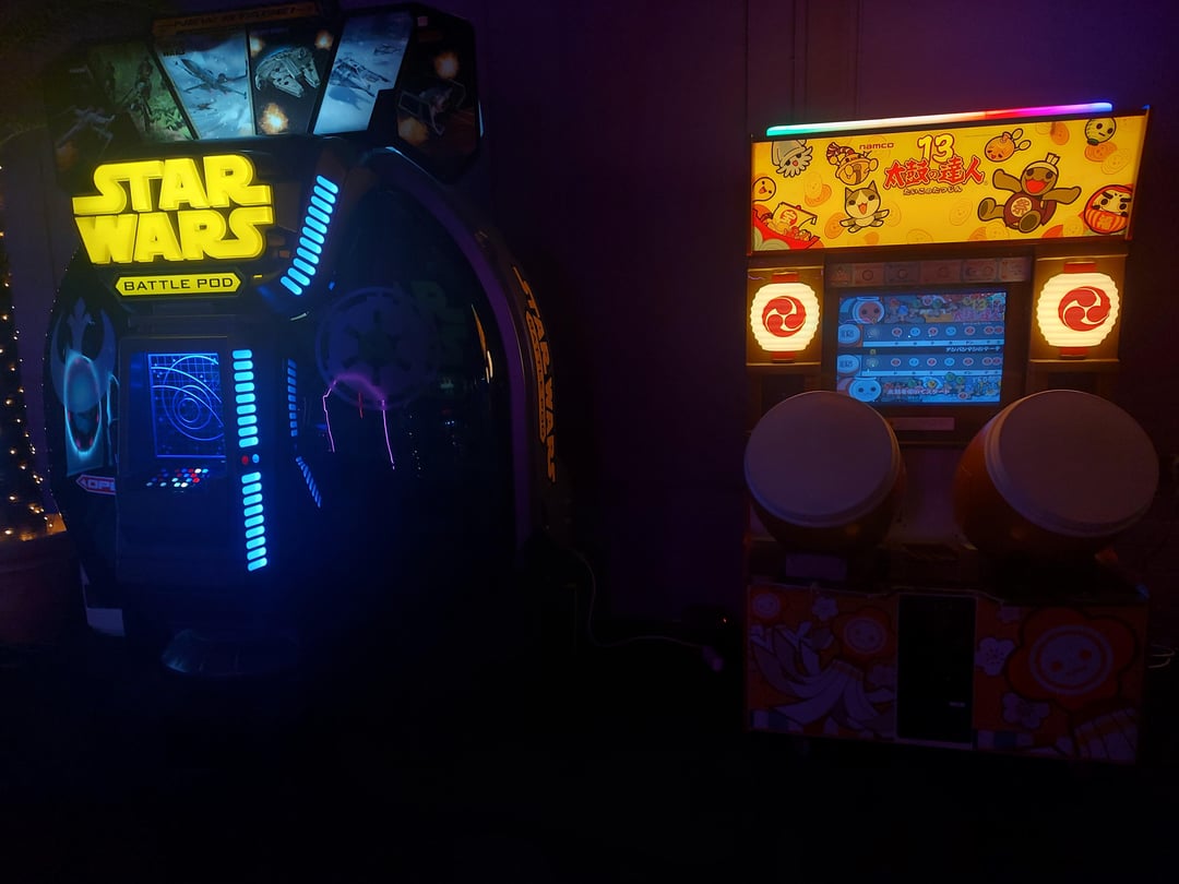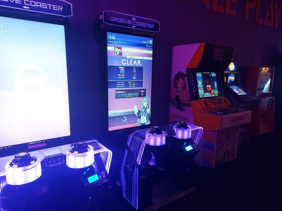 Iets wat wel uniek is aan deze arcade, de hoeveelheid classic rhythm games. Echt geweldig, Guitar Hero, Dancing Stage Euromix (soort DDR), Taiko, MaiMai, PopnMusic en Groove Coaster (helaas werkte de linkse niet, ik kreeg deze alvast niet aan de praat). Ook al zijn de helft van deze games japanse versies, je moet er niet te veel bij nadenken en gewoon iets leuk kiezen. Ik had het geluk om toevallig een pro te zien spelen op de MaiMai, ik denk dat ik het had moeten filmen om de beelden te vertragen om te zien wat ie nu net aan het doen was, zeer imponerend. Ik denk ook dat er een nieuw vel over de Taiko is getrokken want ik kan me herinneren dat deze in slechtere staat was, hij speelt nu perfect. Probeer Ievan Polkka maar eens op de hoogste difficulty te spelen voor een uitdaging. De Groove Coaster aan de linkerkant kreeg ik helaas niet aan de praat dus ik kon het niet tegen elkaar spelen. Weet niet of het aan mij lag of dat er iets defect was. De muntdoor stond alleszins open. Je kan trouwens op sommige van deze machines oortjes aansluiten, dat kan wel nuttig zijn want als iedereen op deze games aan het spelen is, dan wordt het een kakafonie van geluiden. Wat me weer brengt bij iets dat een klein minpuntje kan zijn voor sommigen, het kan wel wat luid worden met al die geluiden door elkaar.