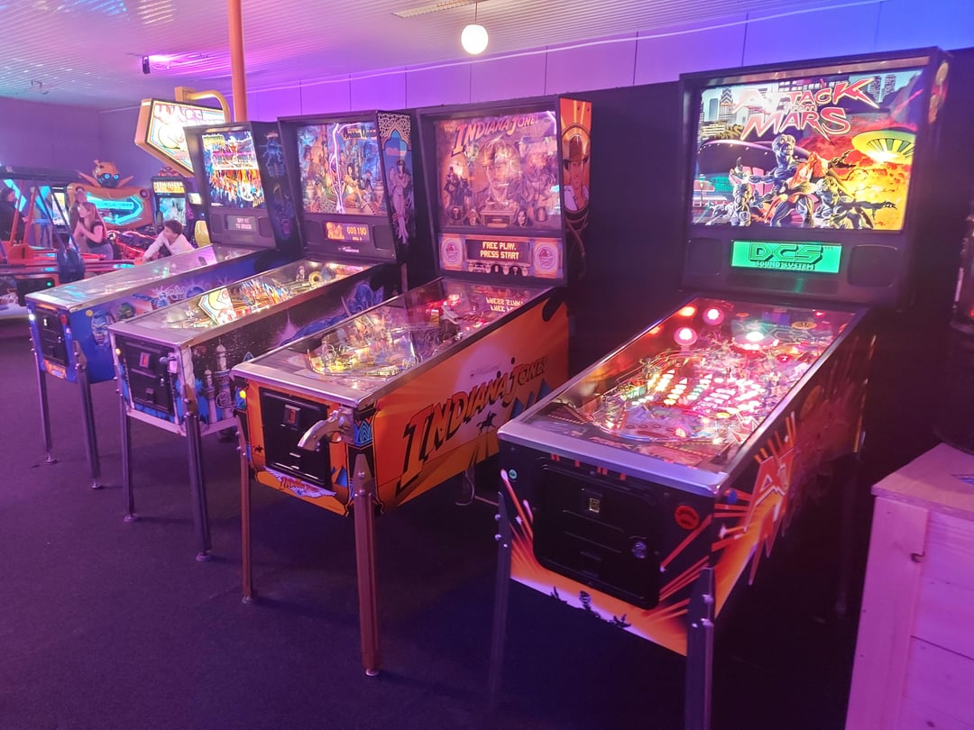 Na de inkom word je begroet door een levensgrote Deadpool met een rij flipperkasten in het midden van de zaal en een hoop old school arcades aan de zijkanten. Ms. Pac-Man, Galaga, The Simpsons, Street Fighter, Golden Axe etc. Ik heb wel een beetje mijn twijfels of het geen reprokasten zijn maar uiteindelijk maakt het niet zo veel uit als ze maar goed spelen. De flipperkasten die hier staan zijn ook zeker de moeite waard! Vlak achter Deadpool staat namelijk… Deadpool van Stern met insider connect dus je kan je score bijhouden! Vlak erlangs staat een zeer mooie Stranger Things van Stern met de speciale UV lighting kit. Deze activeert wanneer je tegen de Demogorgon moet vechten, let wel goed op want het is vrij moeilijk om je bal nog te zien met al dat geflikker, schiet de bal recht in zen muil in 1 keer voor een mooie bonus btw. Er staan nog 2 andere Stern kasten met insider connect in de andere ruimte (Godzilla en Iron Maiden), ik had ze eerlijk gezegd bij elkaar gezet maar bon. Ze hadden er wel nog 2 oudere kasten van Stern langs staan zonder insider connect. Aan de andere kant kan je o.a. Indiana Jones en Attack from Mars (remake van 2017) vinden. De rest van de flipperkasten kan je in de andere ruimte vinden. Hier kan je zoal Star Trek en Shrek vinden maar ook Jurassic Park en de klassieke Playboy vinden. (Afhankelijk van hoe goed je kan spelen, valt er nog wel wat te zien 👀) Ik moet helaas wel zeggen dat ik bij de flippers merkte dat er hier en daar wel wat onderhoud nodig was. Sommige shots waren onmogelijk te maken (flippers niet goed afgesteld), sommige lampjes waren kapot en de trekkers stonden niet sterk genoeg afgesteld. Als casual ga je hier niet veel van merken maar als je een echte speler bent, dan ga je je er mogelijk wel aan ergeren.