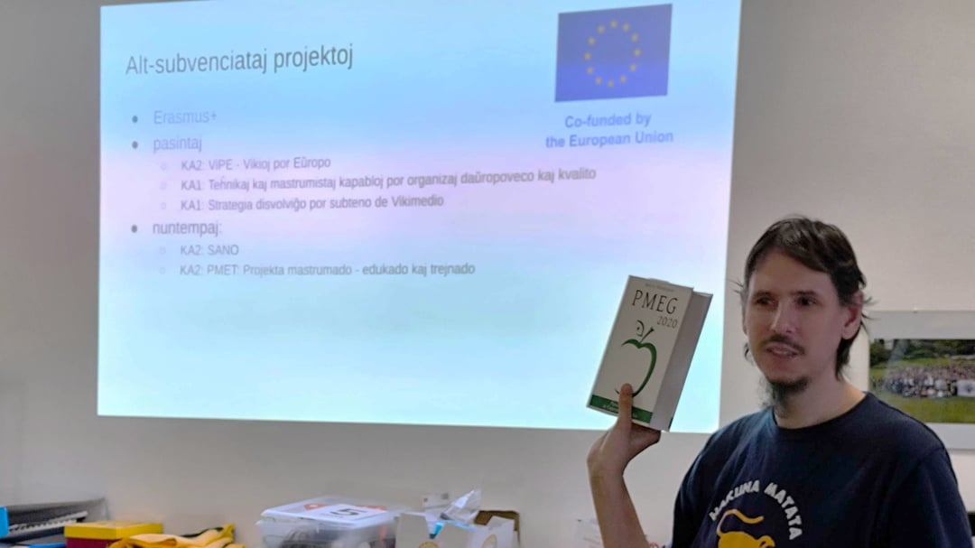 KuboF Hromoslav o novinkách z Wikimedia EO (občianske združenie podporujúce Wikipédiu) a Projektejo – novo pripravovanom nástroji projektového manažmentu pre celú esperantskú komunitu.