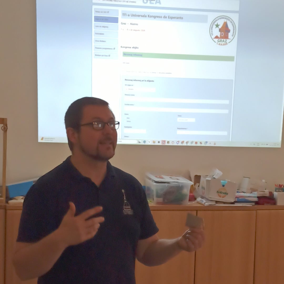 Ďalší deň sme mali pár prednášok v kancelárii občianskeho združenia [E@I](mailto:E@I). Peter Baláž predstavil nedávne aktivity E@I, novo vydané knihy, Svetový kongres esperanta 2026 v Rakúsku a 2027 v Austrálii, ktoré organizuje.
