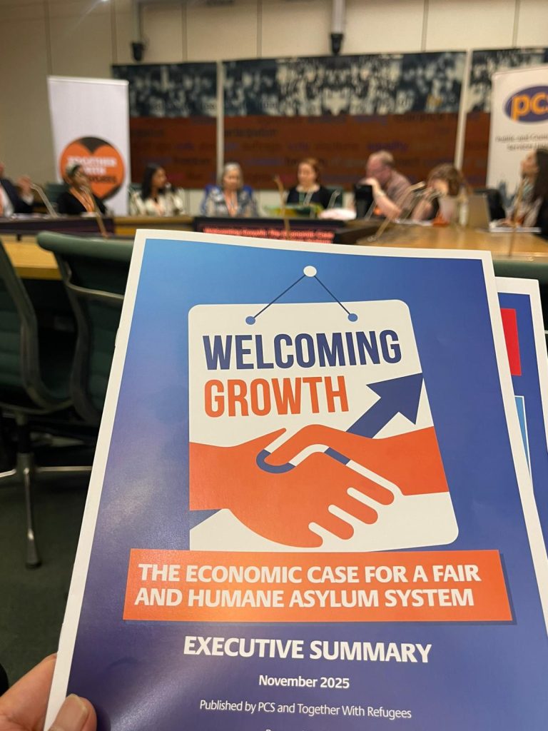 Last month, on the day the government announced major changes to the asylum system, we launched another report entitled ‘Welcoming Growth: The economic case for a fair and humane asylum system’ in partnership with PCS (Public and Commercial Services Union). Carried out by the London School of Economics, it revealed that every refugee accepted in the UK would contribute £266,00 to the UK economy with fair and humane changes to the asylum system.Â